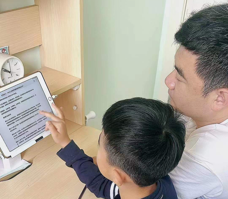 家长与孩子共同学习法律知识。贾子君 摄