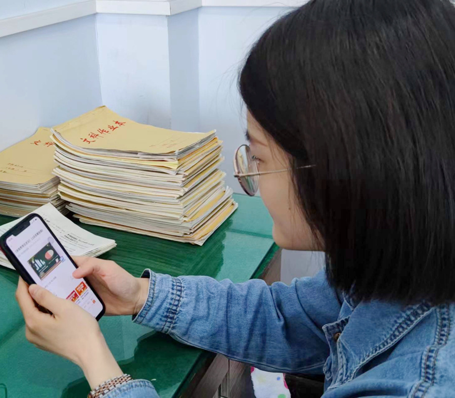 教师认真观看学习视频。贾子君 摄