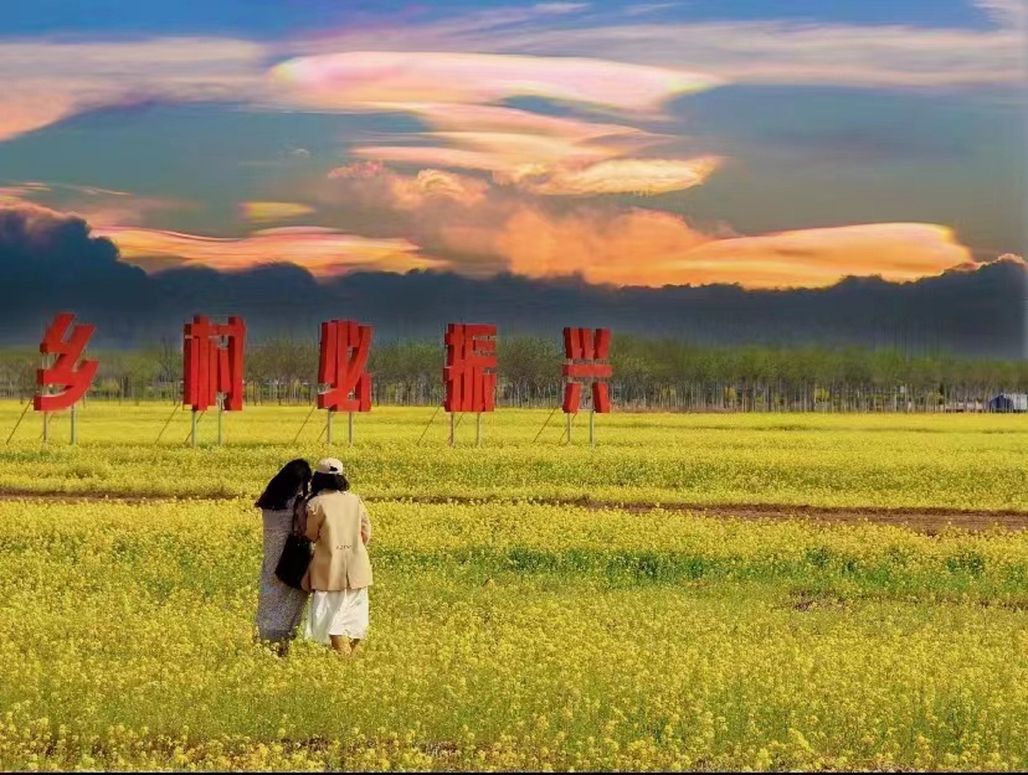 在安平县杨屯村万亩油菜花产业基地,游客在赏花游玩。靳运强 摄