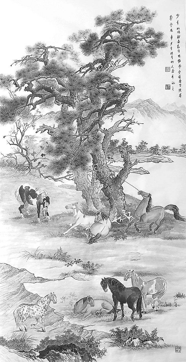 国画 《八骏图》 王树文 作