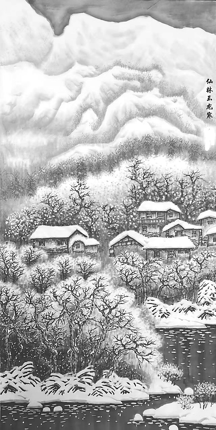 国画 《仙林玉龙寒》 金新 作