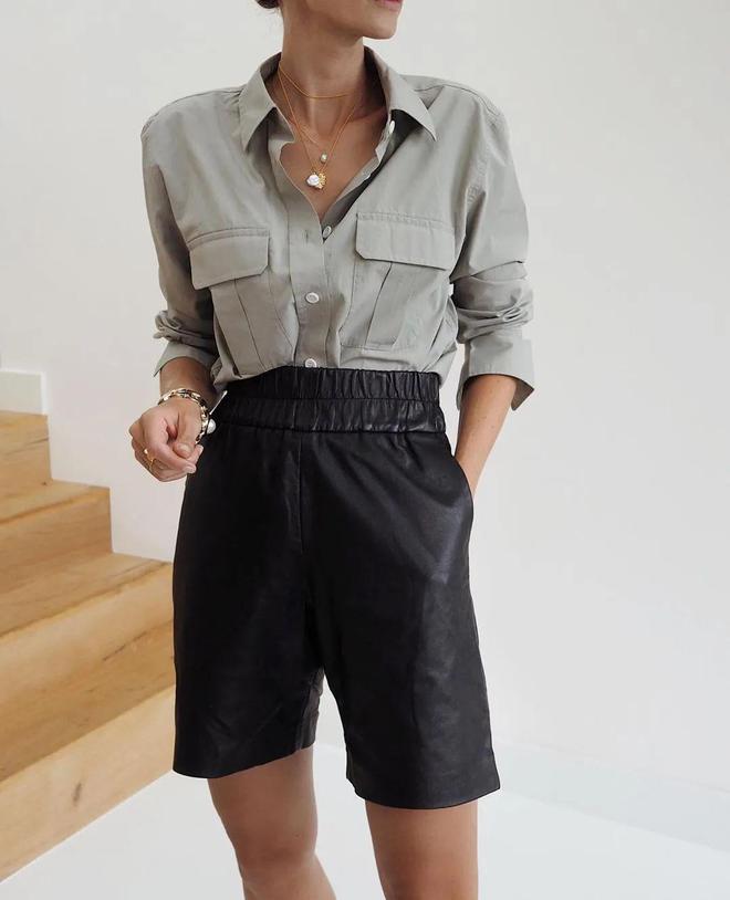 皮质短裤无论是上身的质感还是对于造型的诠释,呈现出女性独立自我的一面,无法被定义,却能刚柔并济