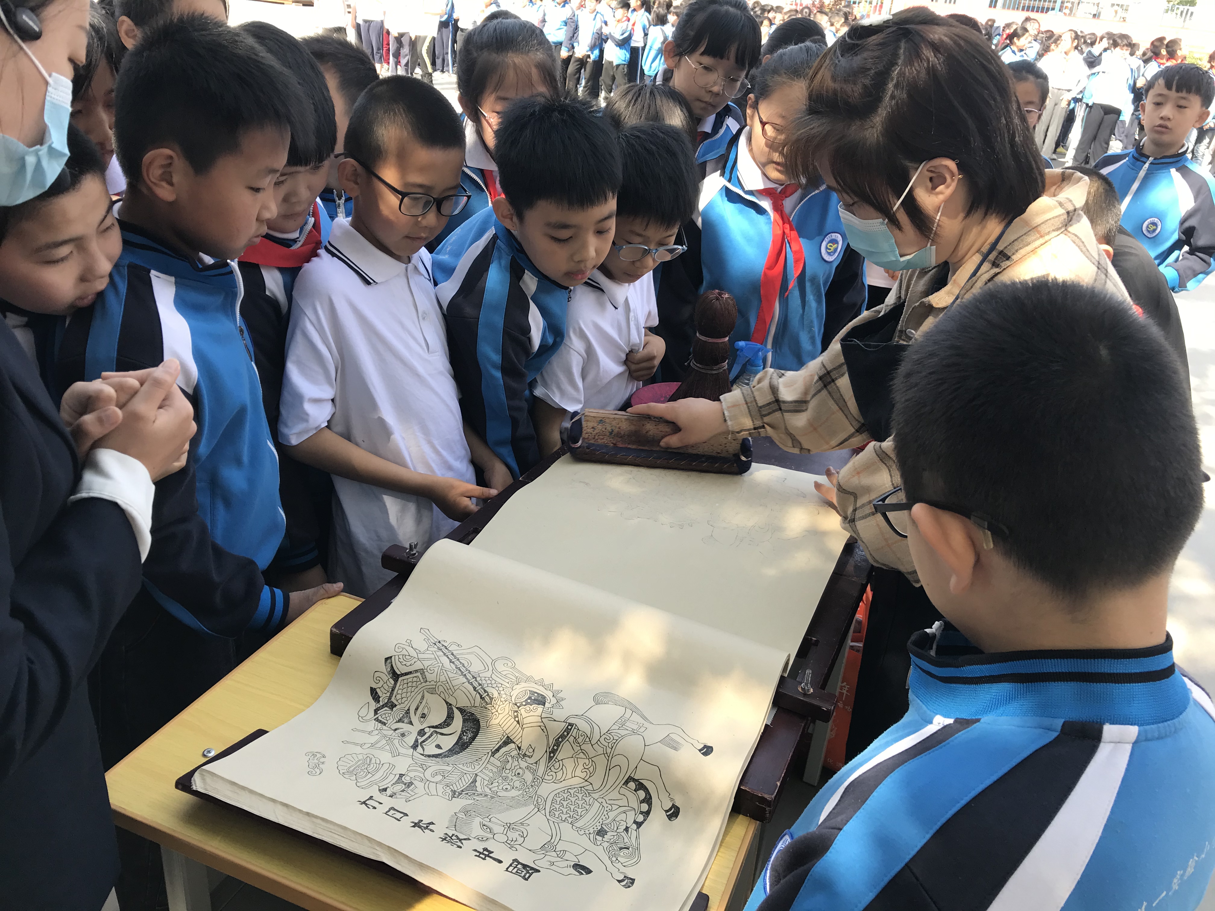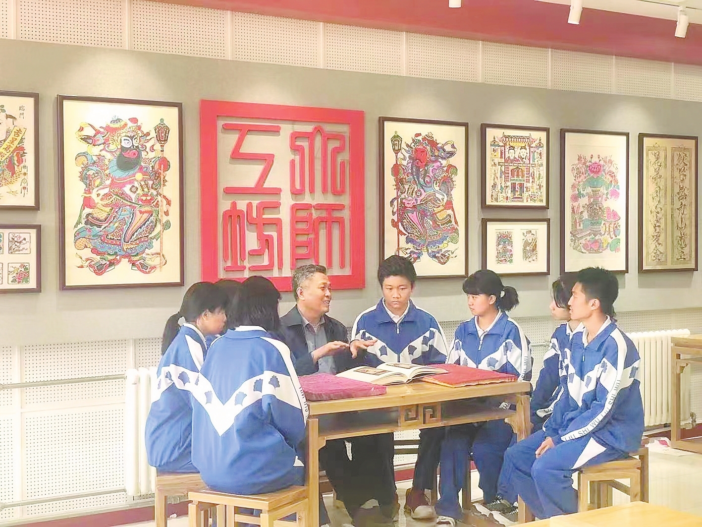 武强年画博物馆讲解员李景玮介绍,“武强年画唱卖谣”小课堂,是博物馆与学校共同开设的年画社团课程的一部分。年画社团课程计划于9月开课,分为低、中、高学段,设置说唱年画、小小讲解员、年画创作、年画刻版印刷、年画装裱5部分课程,每部分课程16个课时,由年画博物馆与学校教师共同参与编排课程内容,博物馆老师负责对学校教师进行指导、培训,定期到校任课。他们系统规划了整个课程体系,利用学生们课后托管时间,让学生们从认知、创作、刻版、印刷到装裱,由浅入深地系统学习武强年画,培养学生的民族审美情趣和热爱家乡的情感,传承武强年画中的传统文化和红色基因,让非遗的传承保护有乐趣、有温度。