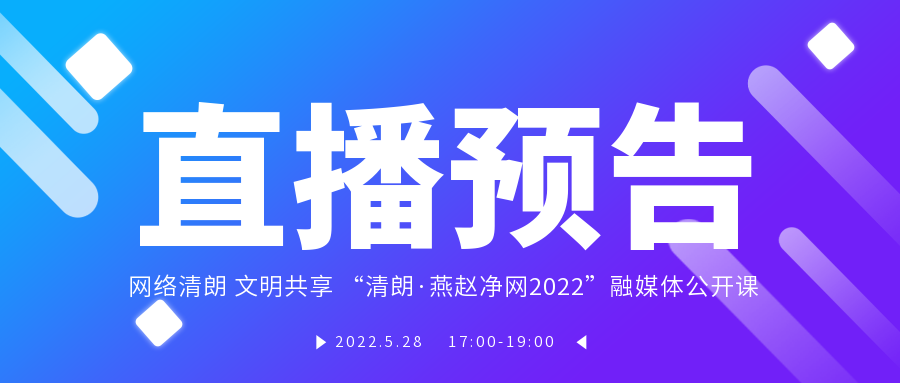 为进一步推进网络生态治理工作,持续提升“清朗·燕赵净网” 网络生态治理专项行动影响力,在“六一”儿童节即将来临之际,河北省委网信办、河北省教育厅等单位决定联合举办“六一”特别节目《网络清朗 文明共享 “清朗·燕赵净网2022”融媒体公开课》。