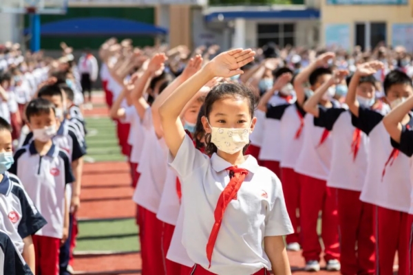 仪式前,学校对新队员进行了入队前教育,使学生了解中国少年先锋队组织,引导队员们继承和弘扬少先队的光荣传统,增强少先队员的光荣感、自豪感。入队仪式在激昂的《中国少年先锋队队歌》声中正式拉开序幕,嘹亮的歌声传递着队员们对少先队的热爱与崇敬。新队员们接受高年级的少先队员为其佩戴红领巾,新队员们在队旗下庄严宣誓,一句句铿锵有力的誓言,表达了“请党放心,强国有我”的坚定信念。