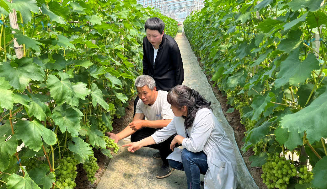 在村民郭振华的大棚葡萄种植基地,“维多利亚”葡萄长势喜人,深州市农业农村局农业社会化服务技术人员正在田间指导。“我们要引领更多合作社、家庭农场创新服务机制,探索多种模式经营。以农业生产多环节托管为重点,全程托管为突破点,因地制宜发展单环节、多环节、全程生产托管等服务模式,大力发展多层次、多类型的专业化服务,引领带动更多小农户进入现代农业发展轨道。”深州市农业农村局农经站站长刘晓梅介绍。