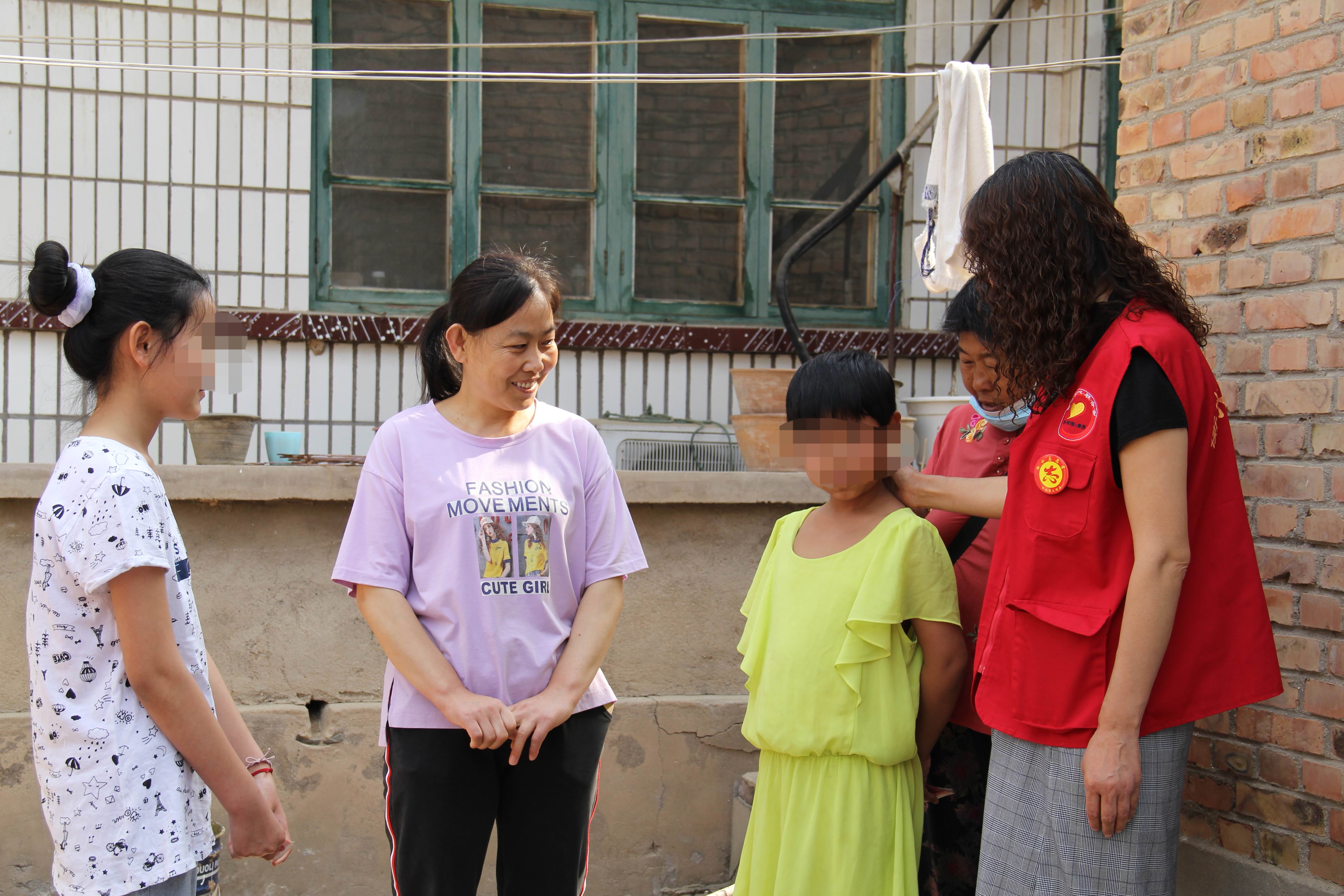 每到一户,志愿者们还给孩子送上崭新的文具、精美的图书和慰问金,懂事的孩子们连连鞠躬致谢。