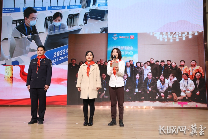 刘亚斌(左)和长城新媒体记者代晴(中)共同出席开学典礼。通讯员 张在朋 摄