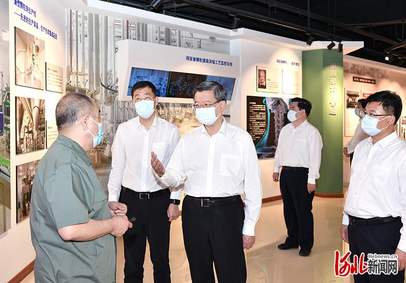 5月28日至30日,省委书记倪岳峰在承德市调研。这是倪岳峰在颈复康药业集团有限公司,了解中医药产业发展情况。 河北日报记者赵海江摄