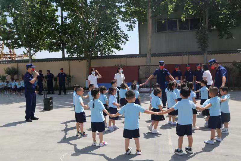 在队站大院训练场,指战员和师生们一起玩“老狼来了”“猫抓老鼠”“丢手绢”等游戏。小朋友们表演了精心准备的舞蹈,感谢他们一直以来为维护人民群众生命财产安全所作出的无私贡献。