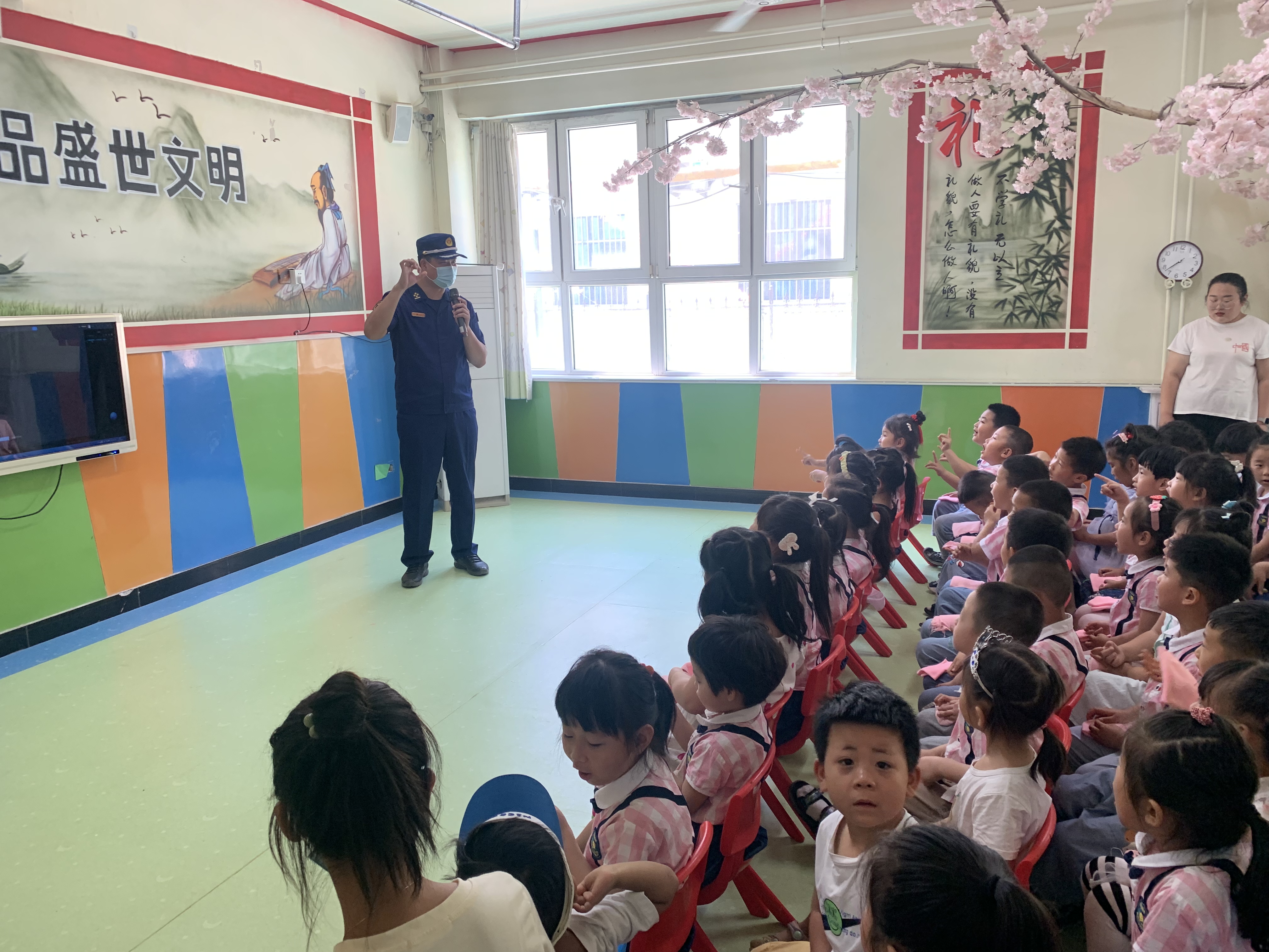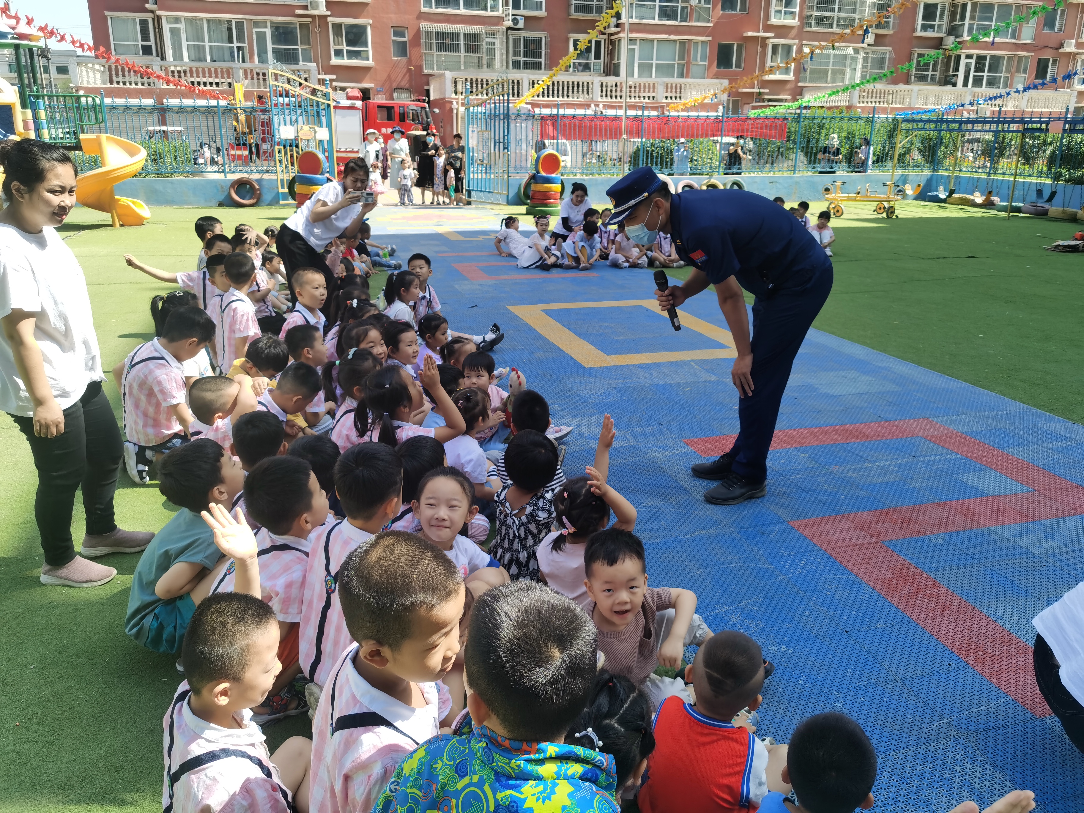 为切实增强辖区幼儿园师生消防安全意识,提高自防自救能力,6月1日衡水高新区消防救援大队宣传人员和人民西路消防救援站消防员,带着一份特殊的“礼物”走进辖区幼儿园,为幼儿园师生开展消防安全宣传培训活动。
