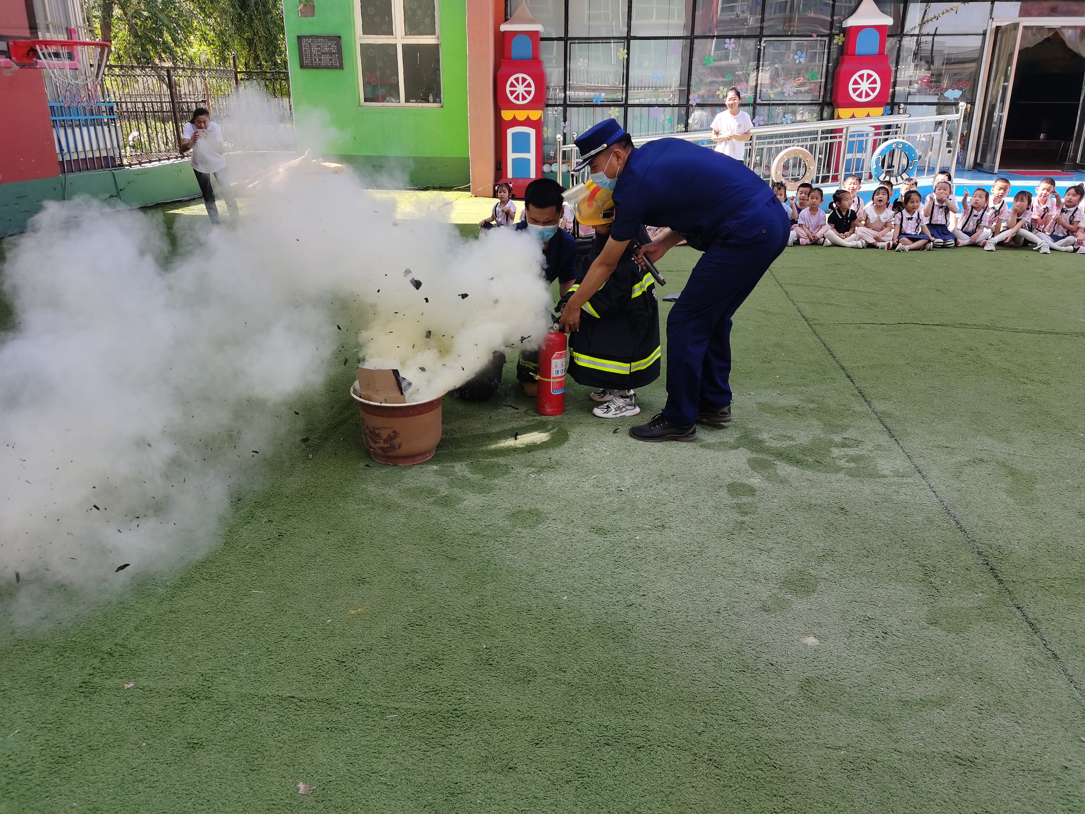 这次宣传的主题是“快乐六一 平安消防”。首先,大队宣教员为小朋友们播放了消防公益宣传片,现场气氛活跃,小朋友们兴致高涨。而后给小朋友们传授了火场撤离的正确方法,开展了一次火场逃生演练,小朋友们在老师及大队宣教员的带领下整齐快速地撤离到了操场上。