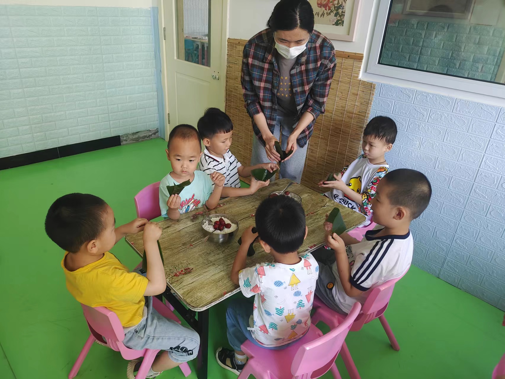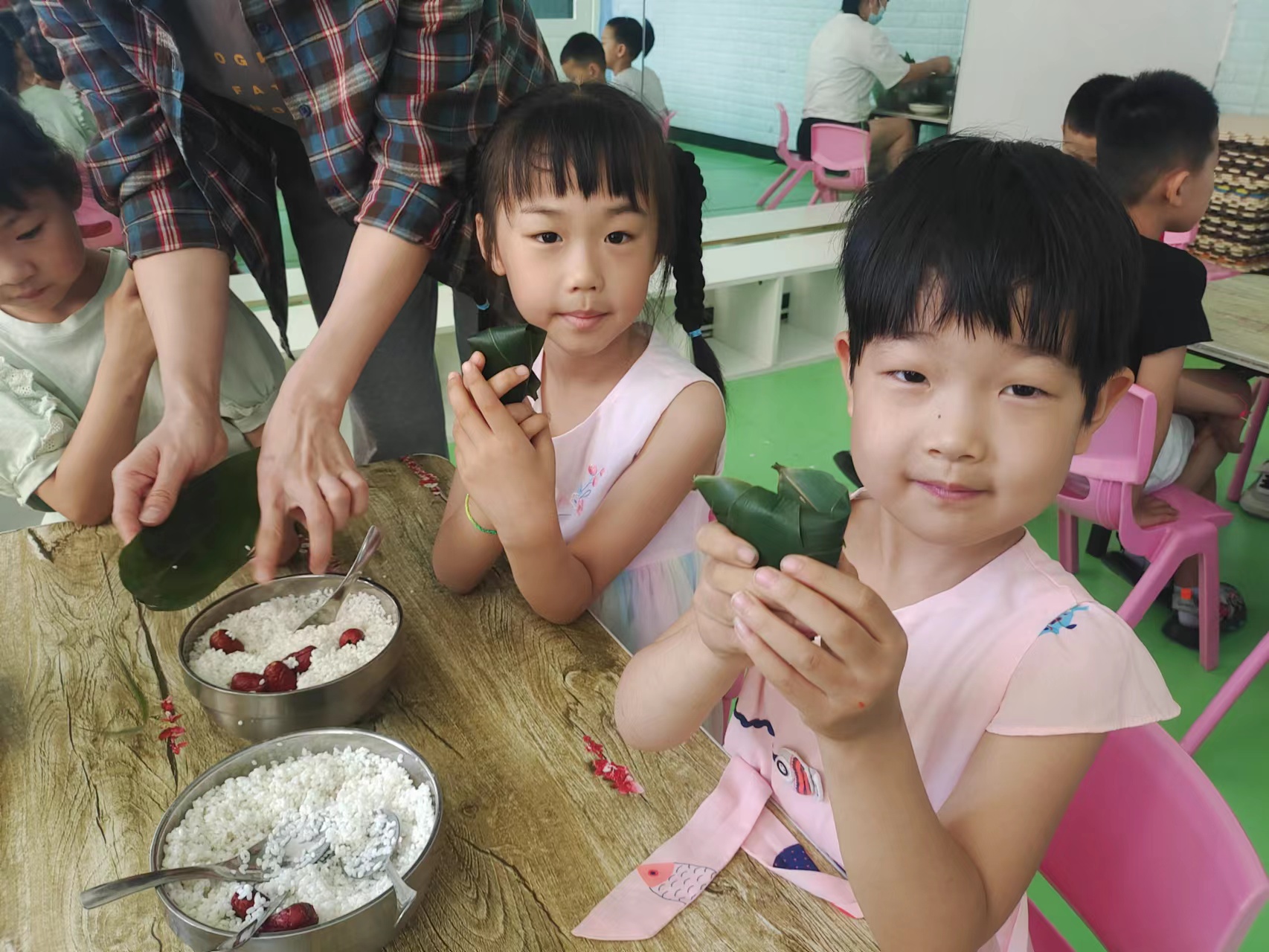 上午9时许,“六一”活动正式开始,老师们通过观看动画等形式,给孩子们详细讲解端午节习俗的由来,让大家认识包粽子所需的粽子叶、糯米等原材料,并带领孩子们参与、亲手制作粽子。整个学习过程趣味性强且十分有意义,拿着自己亲手包的粽子,孩子们脸上都洋溢着满满的成就感。随后,孩子和老师们一起表演节目、做游戏,园内笑声阵阵。