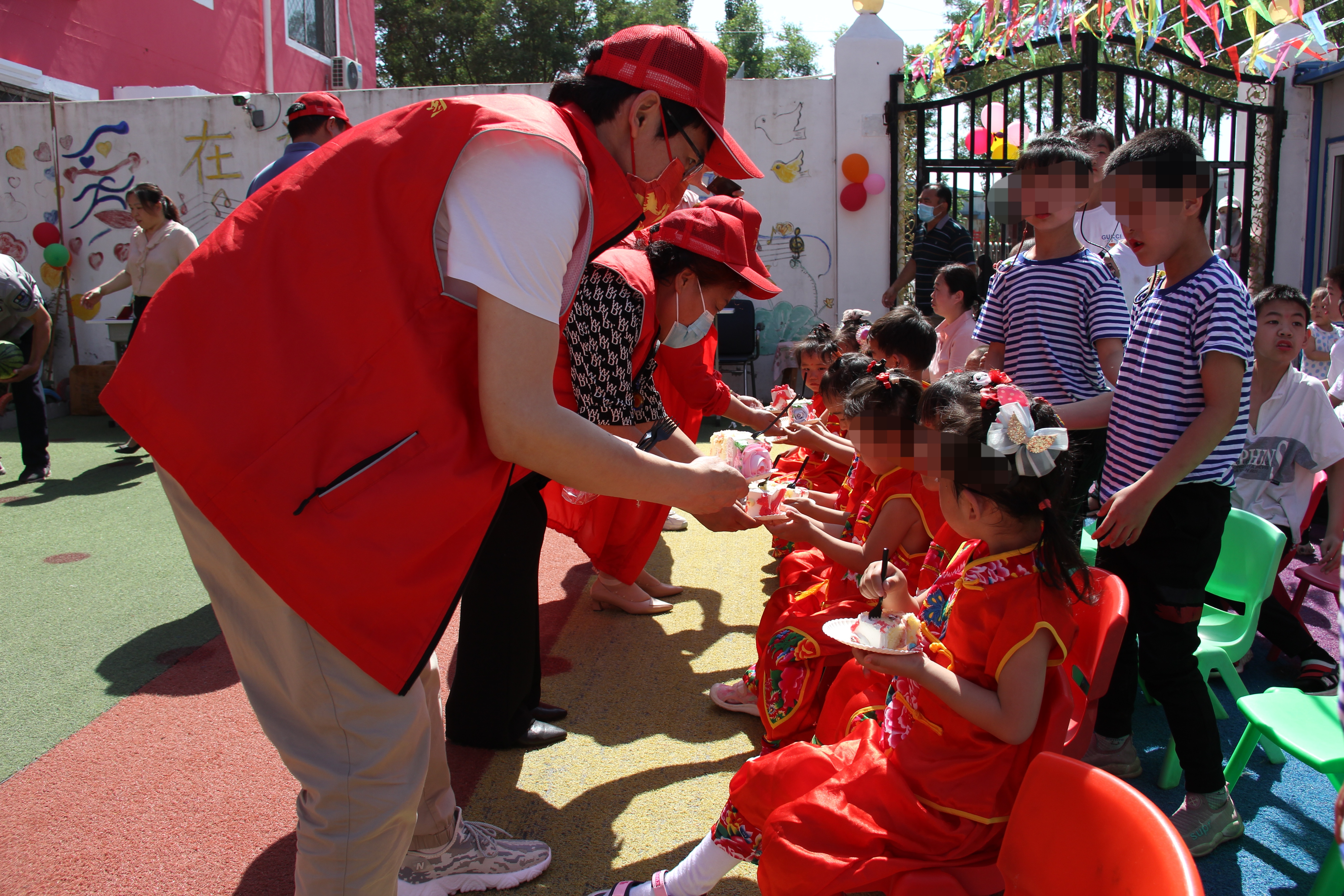 文艺表演结束后,大大的节日蛋糕“空降”现场,又引起孩子们一片欢腾。志愿者和老师共同为孩子们切蛋糕、送蛋糕,现场处处洋溢着欢乐温馨的气氛。“孩子们,祝你们节日快乐,愿你们好好学习,将来成为对社会有用的人,把爱心接力传递下去。”“中国好人”宋瑞平来到孩子们中间,送上殷切祝福和希望。