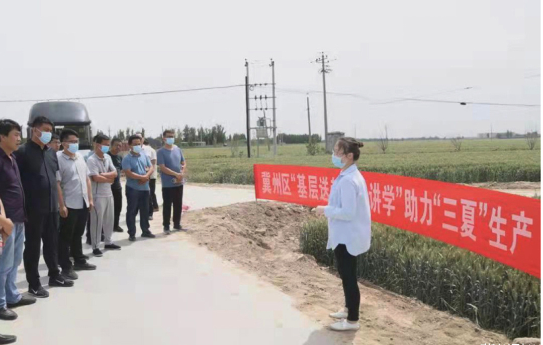 冀州区农业农村局专家在田间现场授课,助力“三夏”生产。冀州区融媒体中心供图