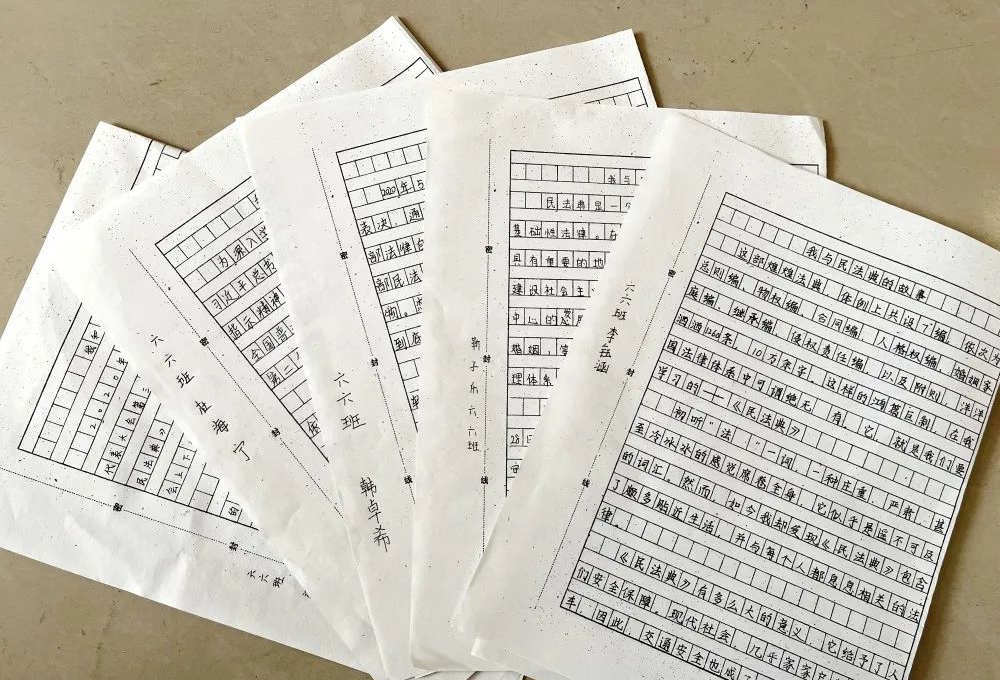 高年级学生以作文的形式讲述自己和《民法典》的故事。衡水市珍宝街小学供图