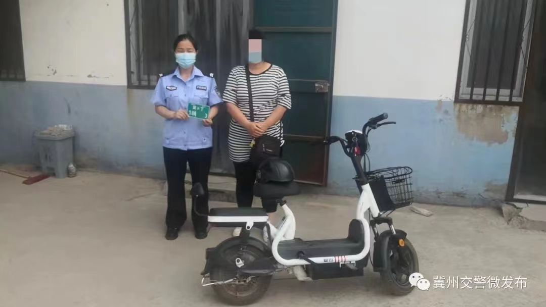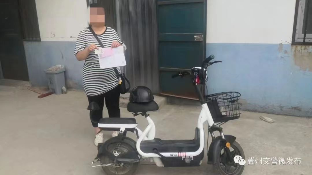 原来,半年多前,邢女士的电动自行车在冀州区职教中心附近一公园被人偷走,车辆合格证等却被她保留了下来。看到报道后,她立刻翻出合格证,尝试通过“河北交警微发布公众号”查询丢失车辆的整车编码,系统显示该车已被登记注册。随后,邢女士将该线索提供给辖区派出所。后经辖区派出所及冀州交警大队联合调查,根据编码“顺藤摸瓜”,很快为邢女士找回被盗车辆,冀州交警大队也立即为其重新办理了车辆登记手续。