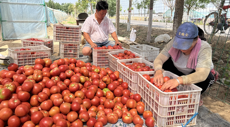 农民正在分装红彤彤的西红柿。深州市融媒体中心供图