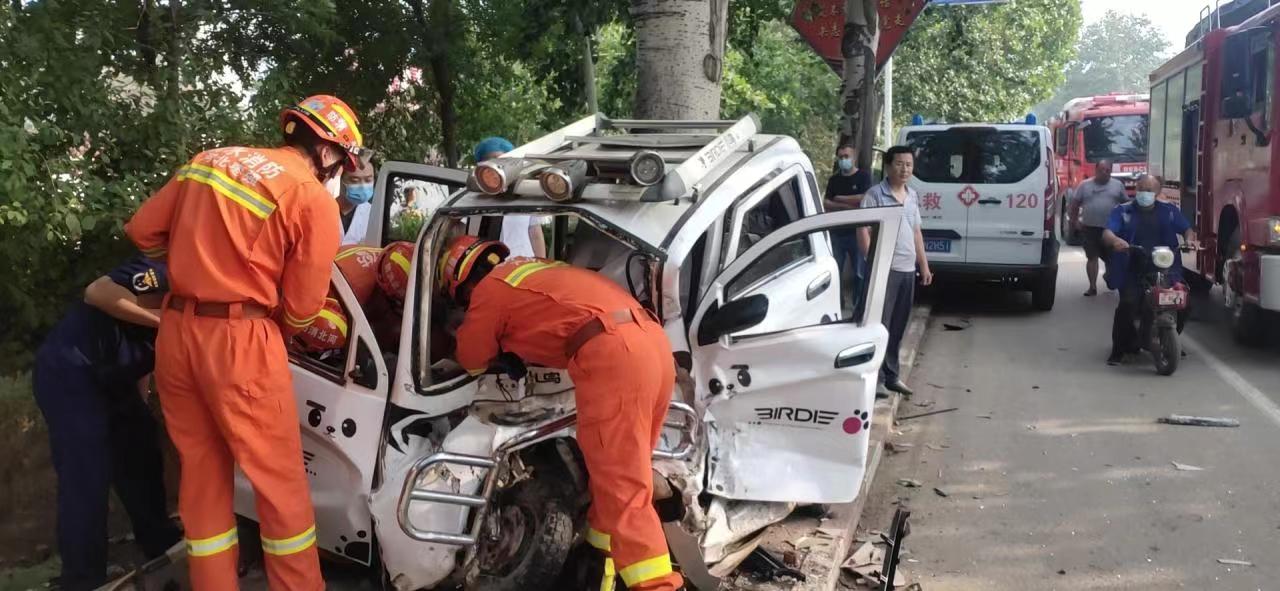 6月16日上午7时许,衡水市消防救援支队枣强大队接到报警称,一辆轿车与一辆电动三轮车相撞,三轮车驾驶人被困。枣强大队立刻调派2车12名救援人员赶往现场。