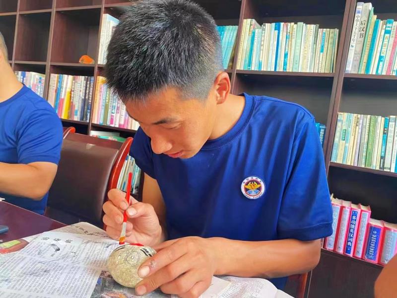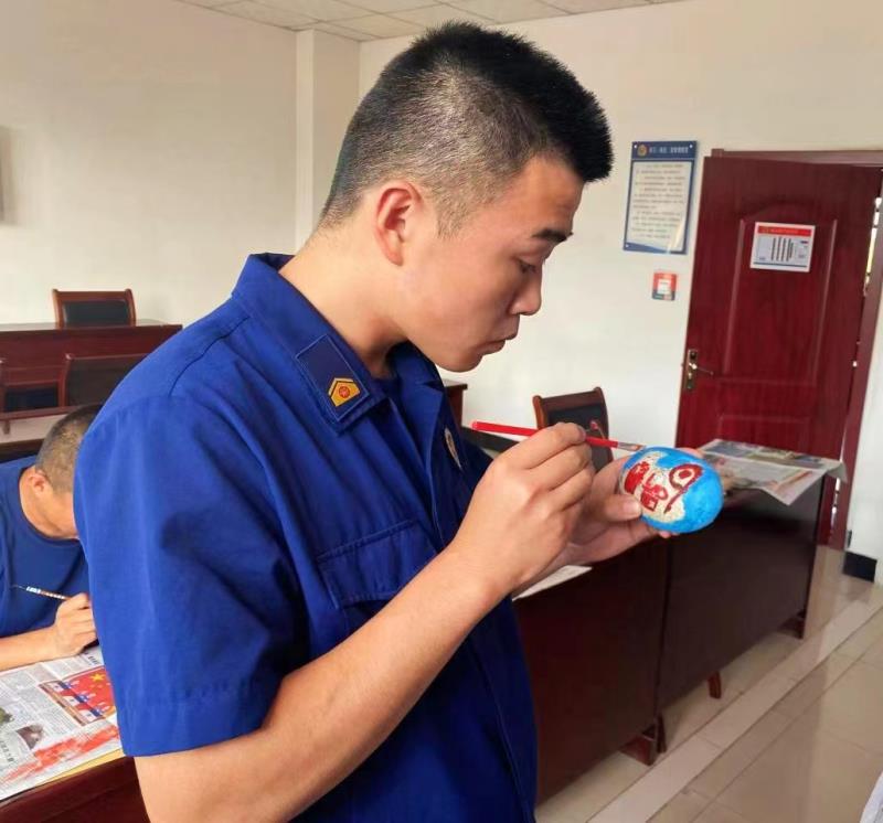 近日,阜城县消防救援大队组织开展了“以石为纸”文化创作活动,全体指战员在不同形状的石头上进行绘画创作,抒发爱党、爱国、爱家的真挚情感。