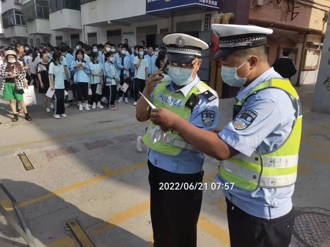 今天是中考第一天,衡水考场内的学子们忙着答题,场外的交警们则忙着护考。