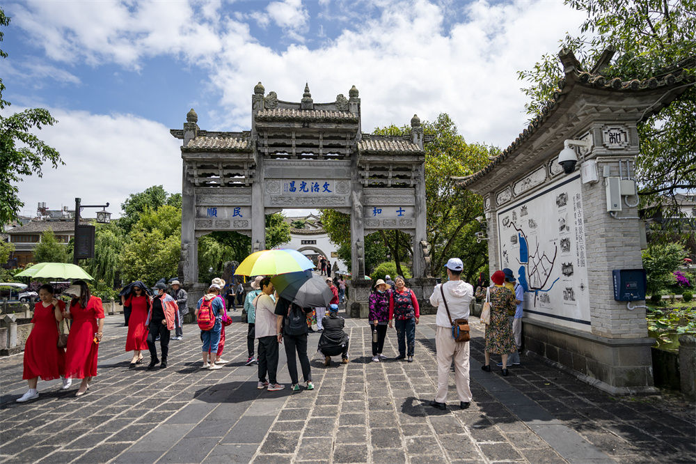 游客在云南省腾冲市和顺古镇内参观游览(5月27日摄)。新华社记者 陈欣波 摄
