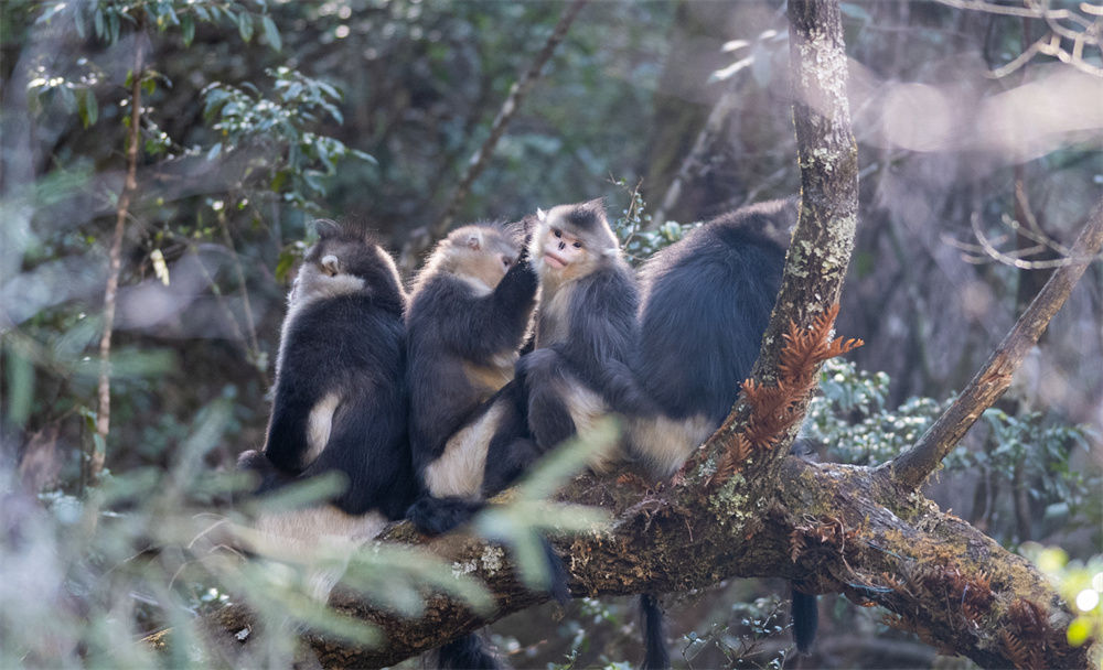 这是在云南白马雪山国家级自然保护区内拍摄的滇金丝猴(3月13日摄)。新华社记者 王冠森 摄