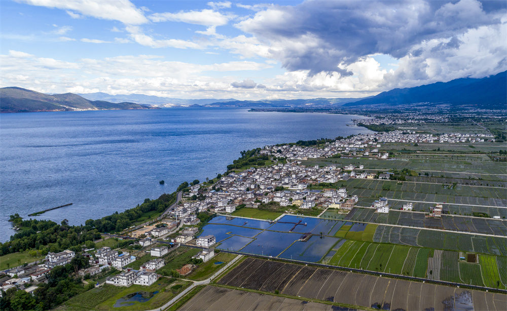 这是云南大理洱海及周边村落景观(无人机照片,5月26日摄)。新华社记者 陈欣波 摄