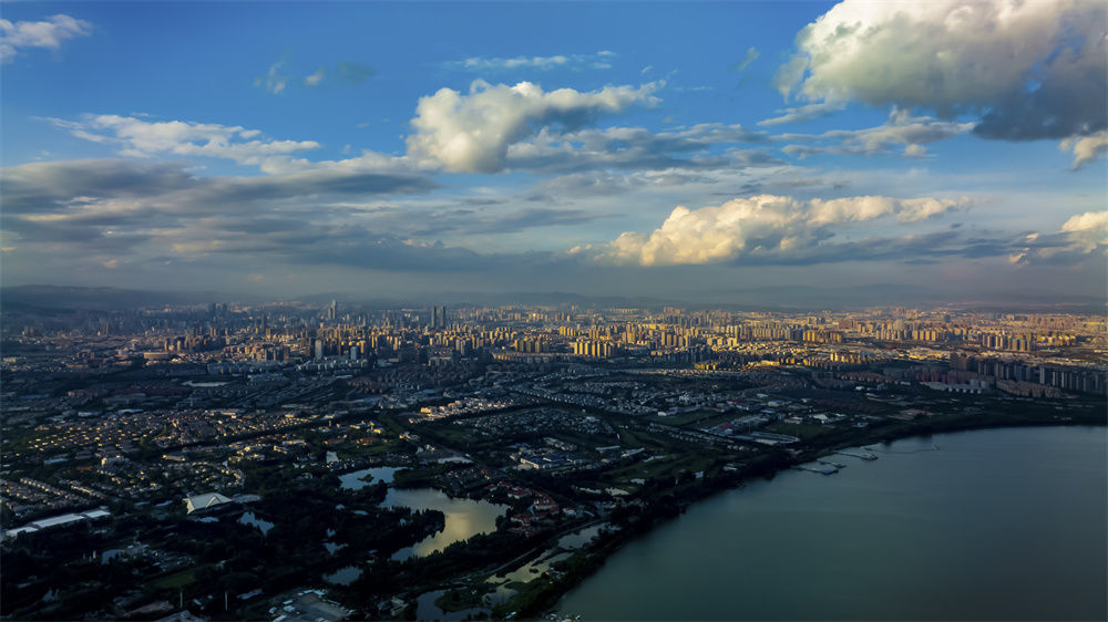 空中俯瞰雨后的昆明市区(无人机照片,5月27日摄)。新华社记者 江文耀 摄