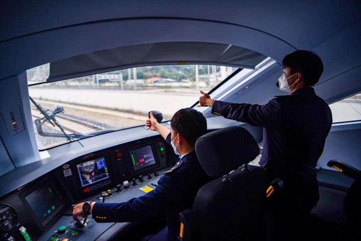 列车司机驾驶复兴号列车行驶在中老铁路上(6月1日摄)。新华社记者 江文耀 摄