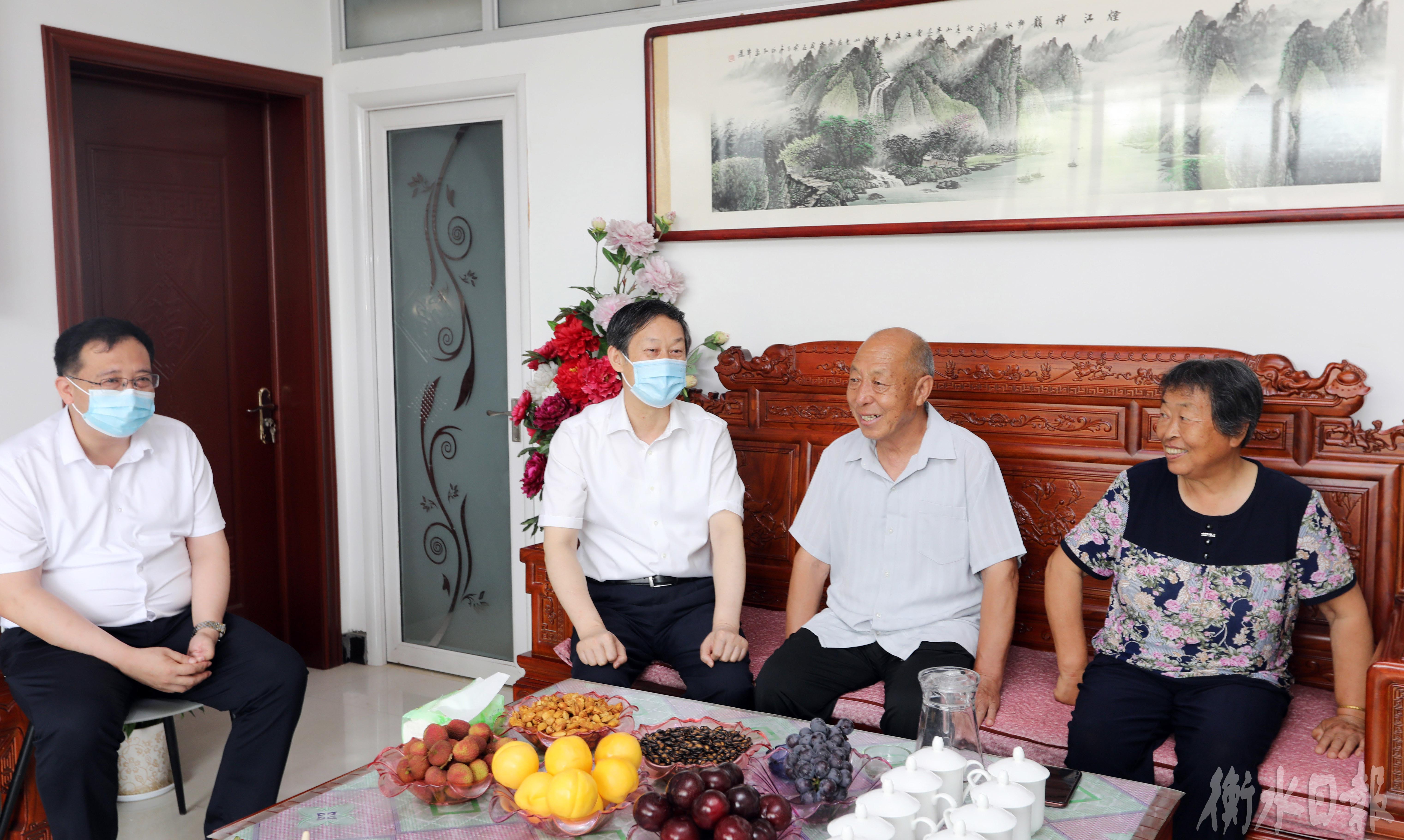 来到蔡旭哲父母家中,吴晓华一行为两位老人送上鲜花与祝福,详细询问他们的身体状况和生活情况。吴晓华说,神舟十四号顺利升空是我国载人航天事业的又一伟大壮举,蔡旭哲成为河北首位出征太空的航天员,为祖国争了光、为河北争了光、也为衡水争了光,感谢二老为国家培养出这么优秀的人才。蔡旭哲同志12年坚持不懈、刻苦训练,终于圆了航天梦,在他身上充分彰显了拼搏、执着、敬业、奉献的精神品格,家乡人民为他取得的成绩倍感自豪、备受鼓舞。我们坚信,有祖国和家乡人民的大力支持,他一定能够不负重托、完成任务、平安凯旋。我们号召全市青年向蔡旭哲同志学习,向各位航天英雄学习,大力弘扬特别能吃苦、特别能战斗、特别能攻关、特别能奉献的“航天精神”,把良好的精气神转化为干事创业的强大正能量,在解放思想、奋发进取中闯新路、开新局,努力在全省经济社会发展中争先进位,以优异成绩迎接党的二十大胜利召开。吴晓华还叮嘱有关部门要精心照顾好两位老人的日常生活,及时解决他们遇到的困难和问题,让他们生活幸福、身体健康、安享晚年,为航天英雄解除后顾之忧。