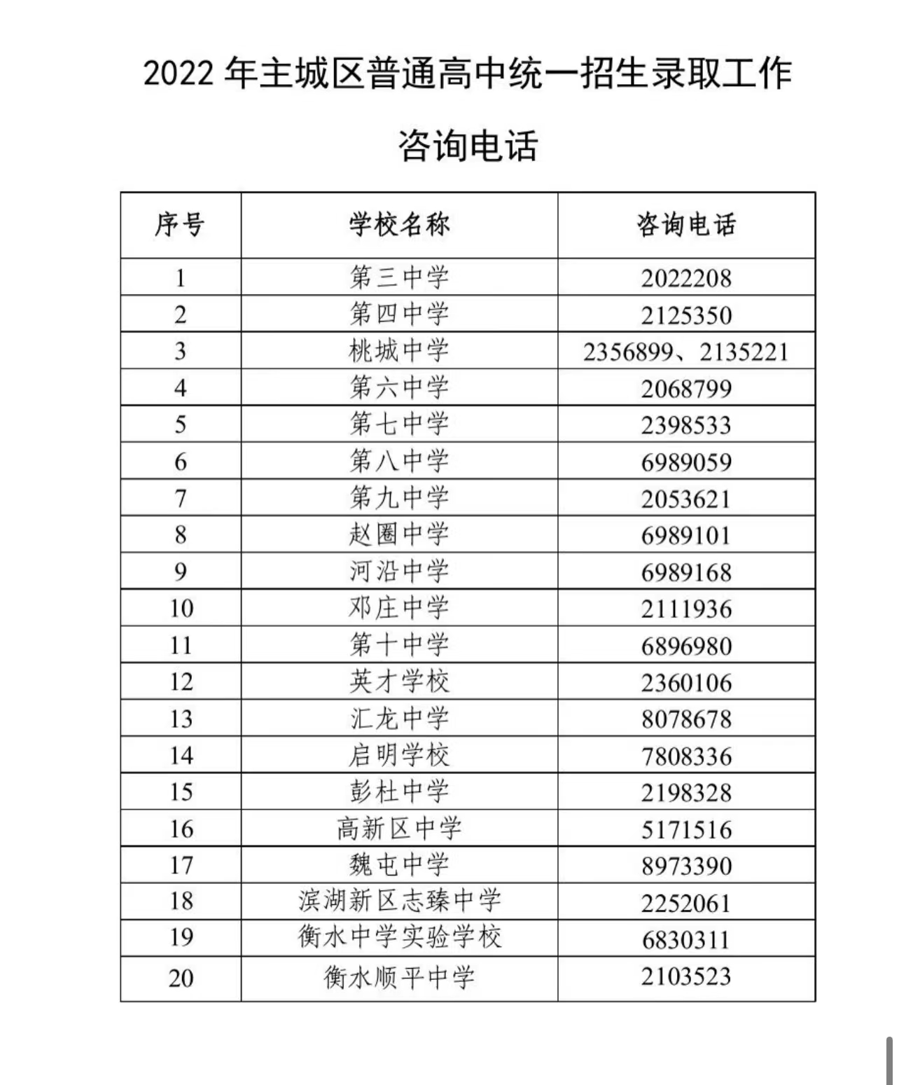 桃城区教育局:6989010 、6989090。