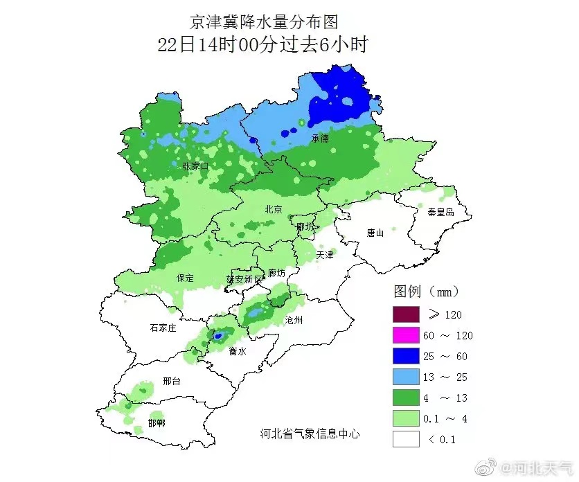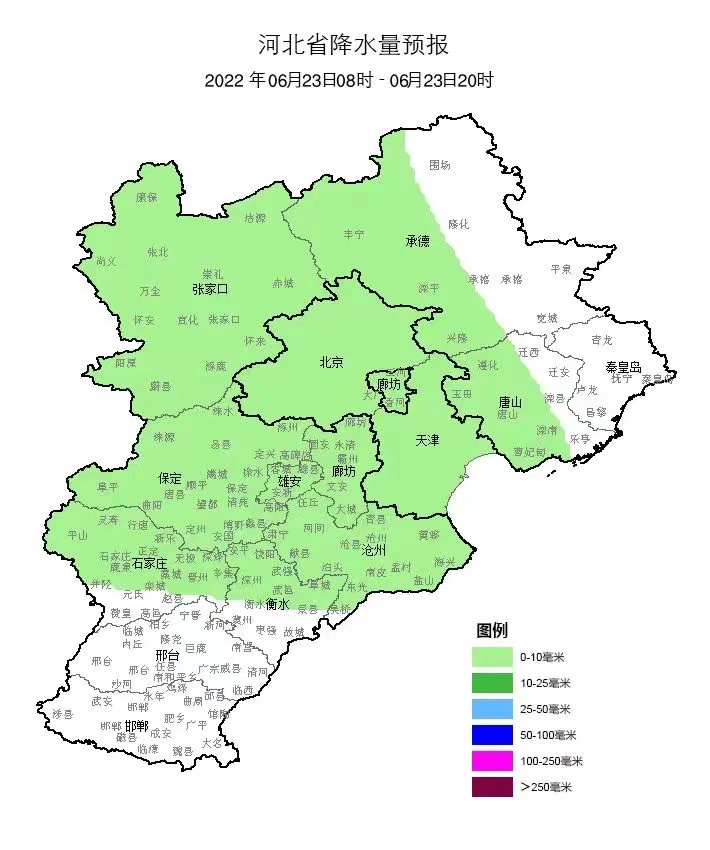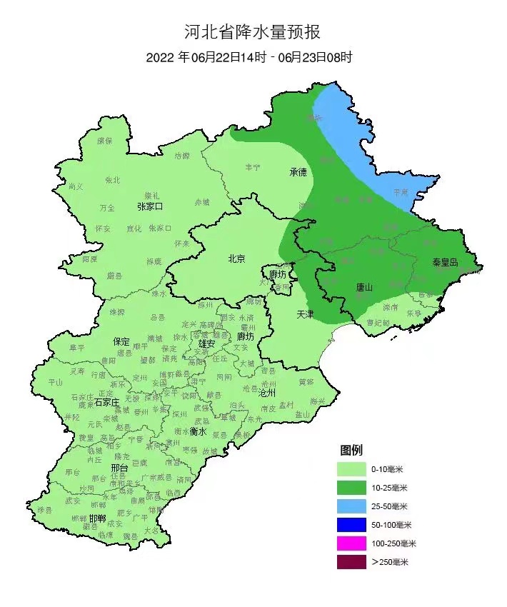 6月22日下午,持续的晴热状态被一场雷雨打断,降雨主要出现在衡水西北部县市,深州一个小时降雨量超过了40毫米。据衡水市气象台预报,降雨将持续到22日前半夜,23日各地又将回归晴热天气。