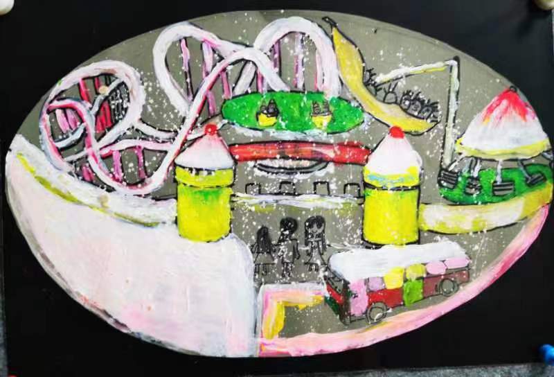 绘画《飘雪的游乐场》 路然然(10岁) 作
