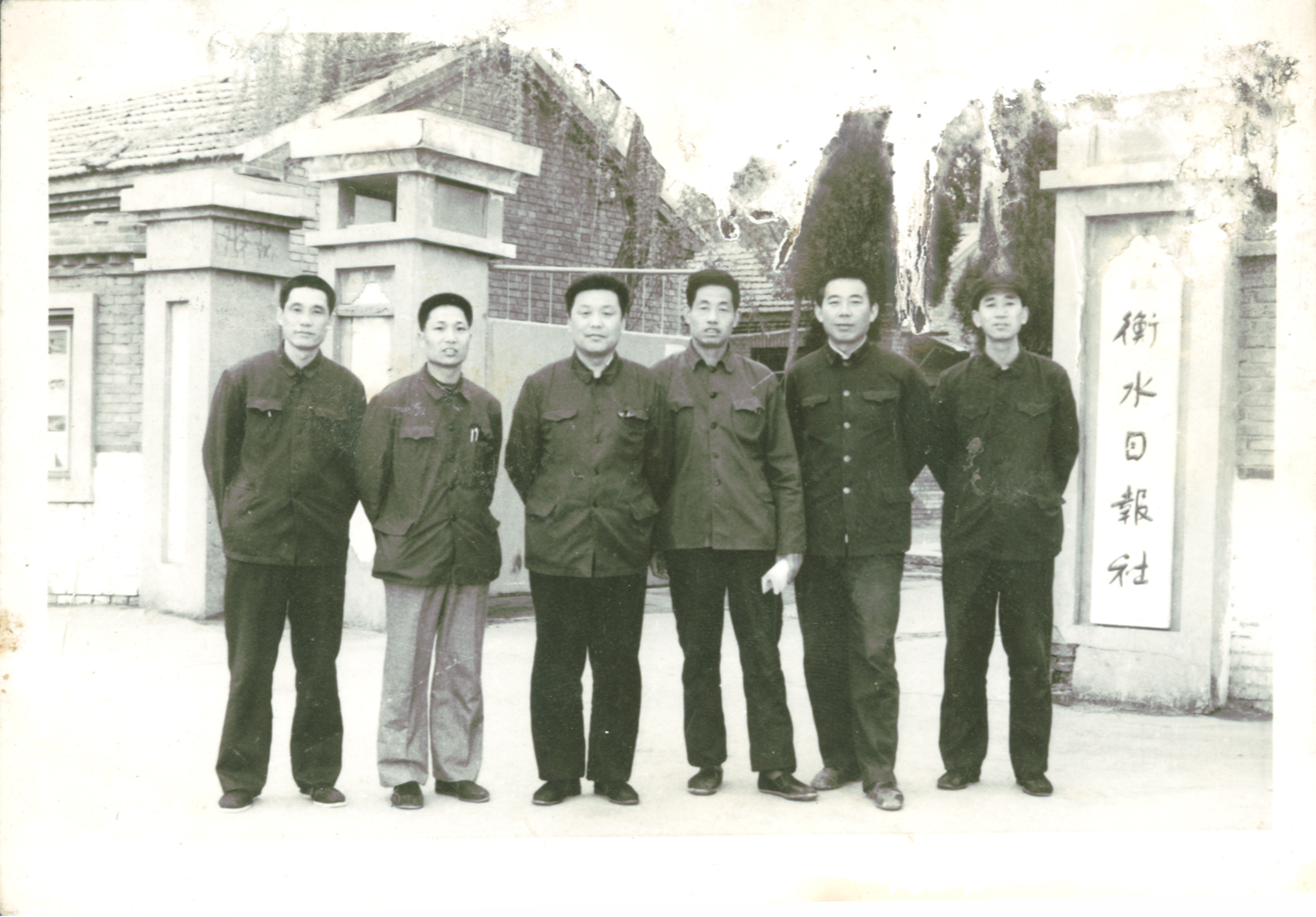 1985年,衡水日报首批特约记者在日报社门前合影。