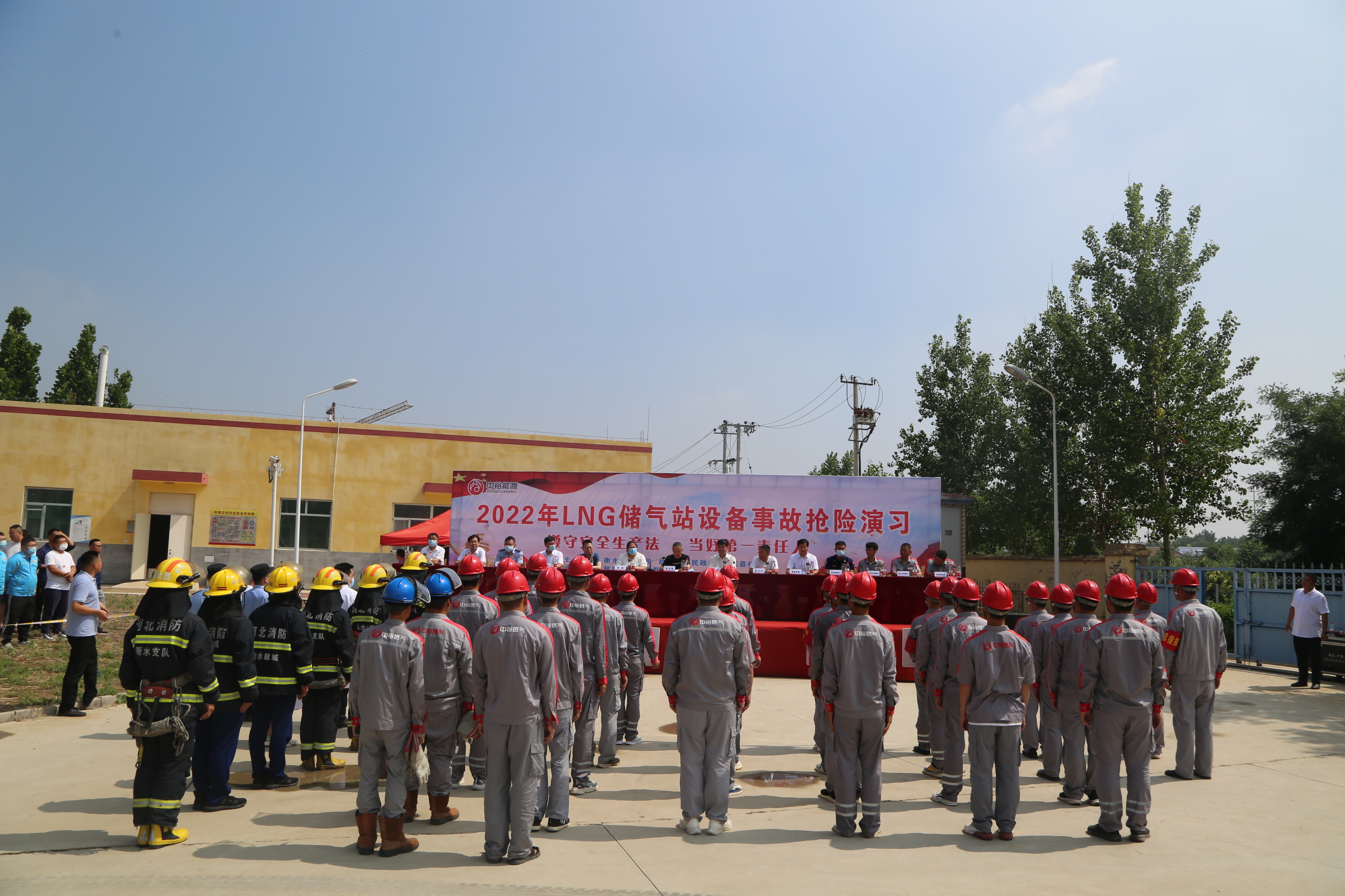 为进一步提高燃气突发事件的综合指挥、快速反应、应急处理和协调作战能力,完善燃气突发事故应急抢险救援体系,切实提高消防救援人员在处置危化品灾害事故中的自身防护和应急救援能力,6月23日,故城县消防救援大队江源大街消防救援站联合故城县住建局、公安局、交通局等多部门在中裕燃气有限公司开展城市燃气泄漏应急处置实战演练。