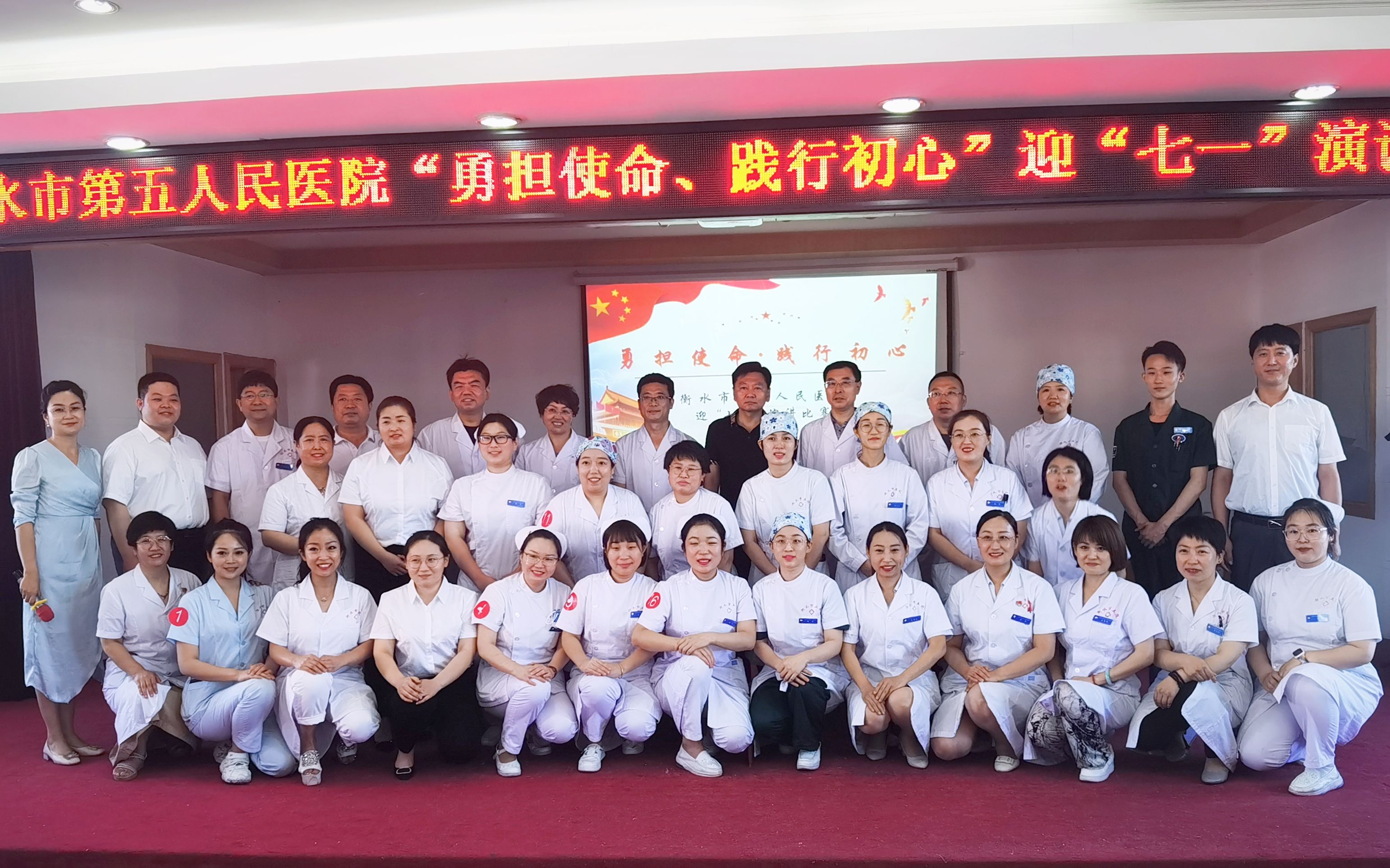 为隆重庆祝中国共产党建党101周年,回顾党的风雨历程,激励医院广大干部职工敬党爱国、不畏艰辛、创先争优的热情和干劲,衡水五院举办了这次“勇担使命 践行初心”迎“七一”演讲比赛。两天艰苦的初赛复赛,18组参赛选手经过层层选拔脱颖而出,杀入决赛,今天角逐最后的冠军。桃城区卫健局相关负责同志、医院领导班子全体成员出席了此次活动。
