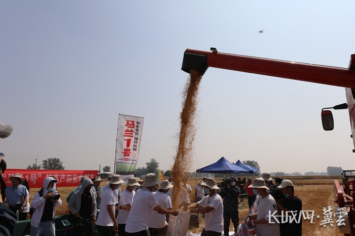 6月13日,由河北省农业农村厅组织的小麦品种“马兰1号”浅埋滴灌晚播千亩示范田实打实收测产活动在石家庄循环化工园区丘头镇徐村和丽阳村举行。经实测,平均亩产778.88公斤,创造了河北省千亩以上规模小麦亩产纪录。