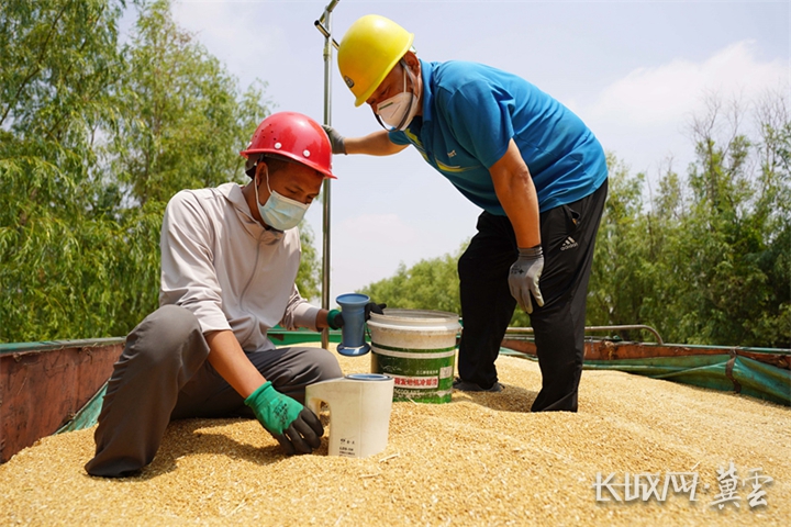 6月17日,在河北柏粮粮食储备有限公司门前,装满小麦的大小车辆排起了长队,粮库工作人员正有条不紊地将粮食化验、过秤和入仓。为了确保收获的小麦颗粒归仓,从今年春天开始,柏粮就启动了夏粮收购的各项准备工作,准备有效空仓容约1亿公斤、收购资金3亿多元,真正做到“人等粮、钱等粮、仓等粮”。