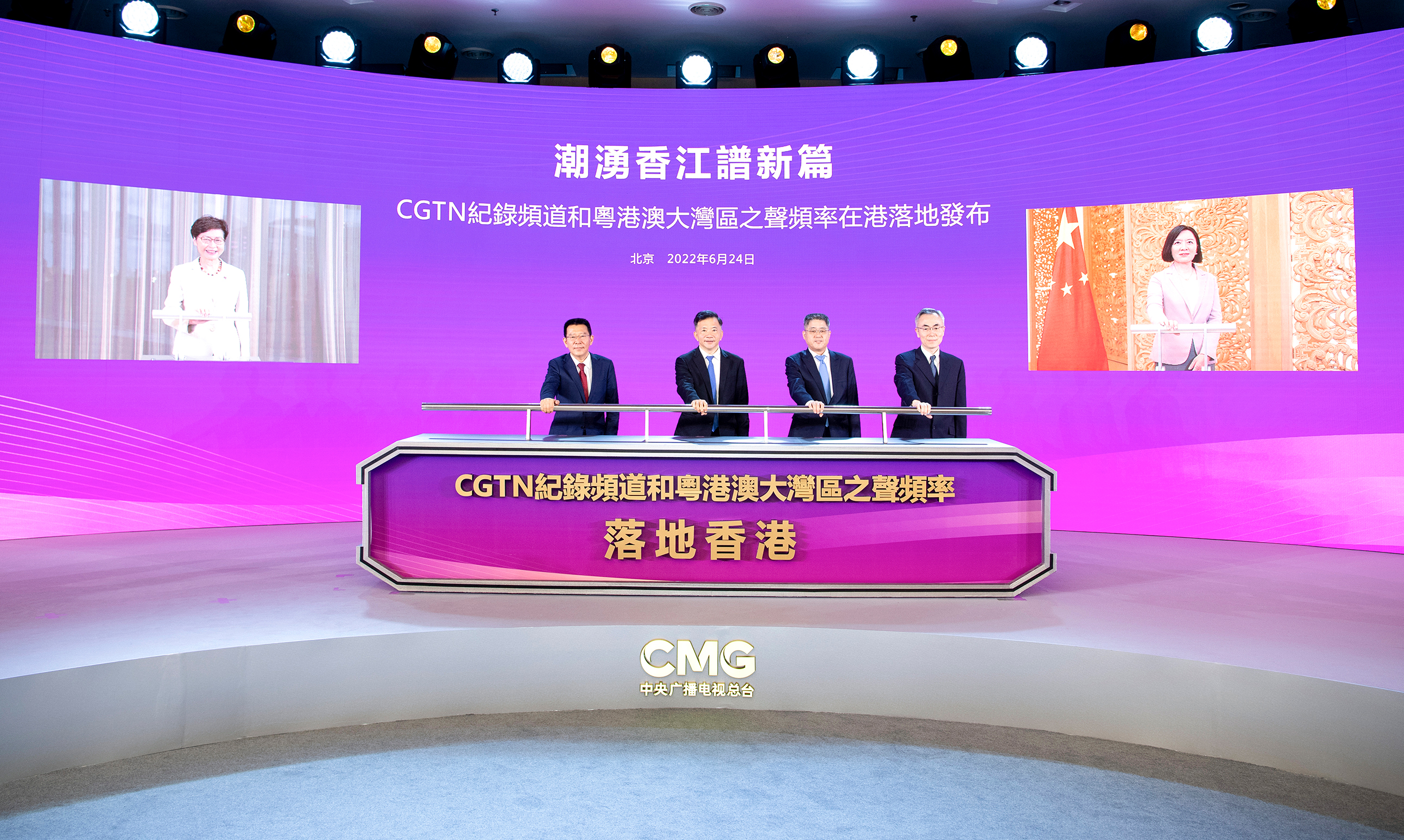 6月24日,中央广播电视总台CGTN纪录频道和粤港澳大湾区之声频率在港落地发布仪式,在北京、香港同步举行。作为助力推动香港“一国两制”实践行稳致远的具体举措,也作为庆祝香港回归祖国25周年献给香港同胞的一份厚礼,总台CGTN(中国国际电视台)纪录频道和粤港澳大湾区之声频率,7月1日起将整频道整频率落地香港播出。