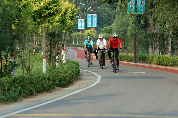 6月17日,市民在河北省沧州市大运河畔堤顶路骑行。新华社记者 骆学峰 摄