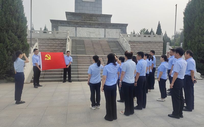 因为当年青年们捐资修建的水泥纪念碑已经残破,枣强县对赵义京、陈耀元烈士墓进行重新修葺时,复建了纪念碑。草白玉的基座上,耸立着青石碑体,古朴庄重。纪念碑周围栽种的32棵塔松,代表了同时牺牲的32名烈士。他们还建成了“赵义京、陈耀元烈士纪念堂”,以丰富翔实的图片、资料,展示了烈士光辉的一生和不朽的抗战精神。我怀着崇敬的心情走进纪念堂,发现在展牌上面挂起了一大块红布,上面写的是中国共产党的入党誓词,红底金字,格外显眼。乡里的领导告诉我,经常有单位组织党员到这里来参观,并重温入党誓词。一边是烈士不怕牺牲、艰苦奋斗的画面,一边是入党誓词,在这样的氛围中更加理解了党的初心,更加明晰了以什么样的精神去践行初心。烈士的英名和烈士的精神,在每一位参观者心里也更加鲜活。