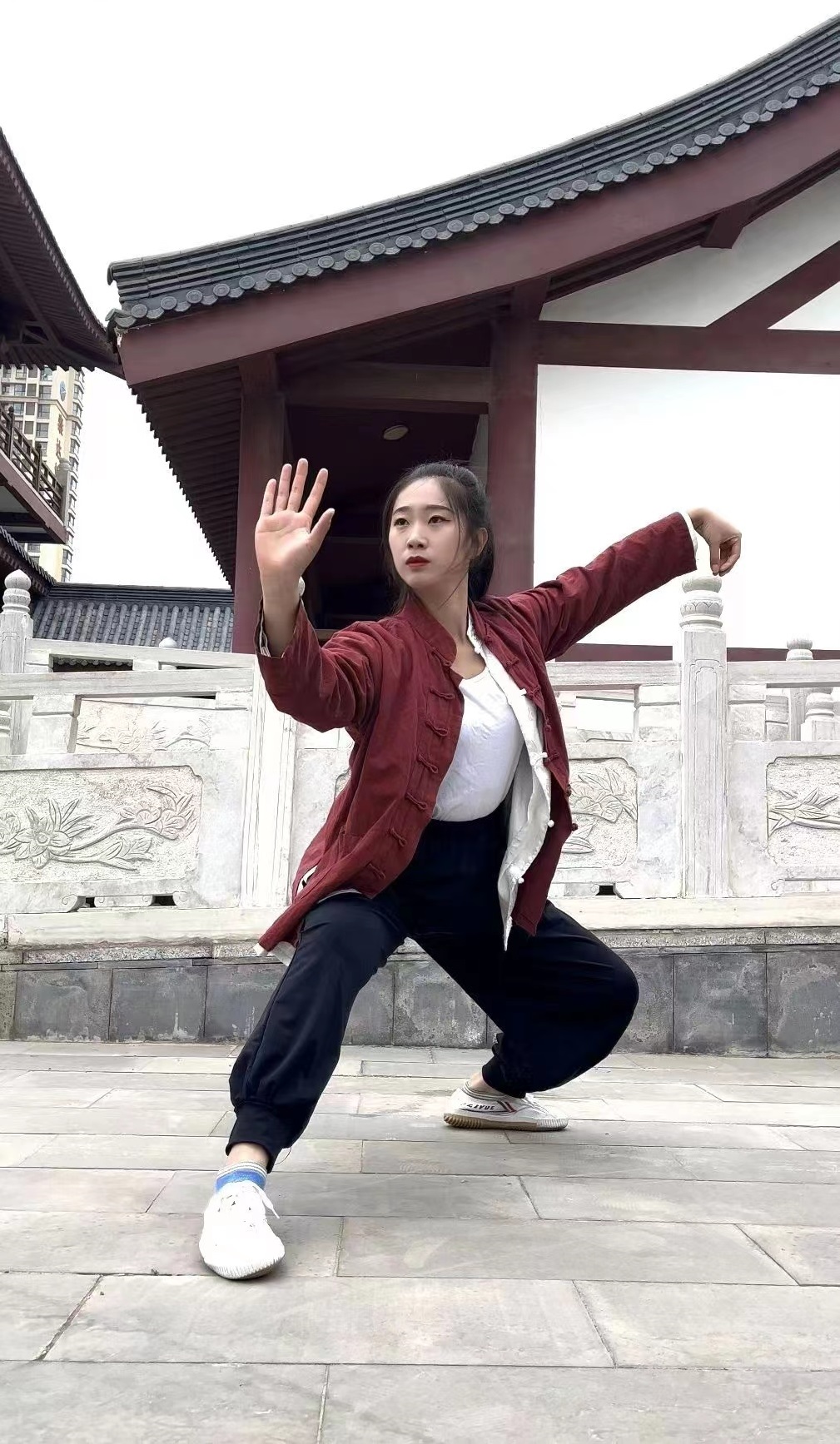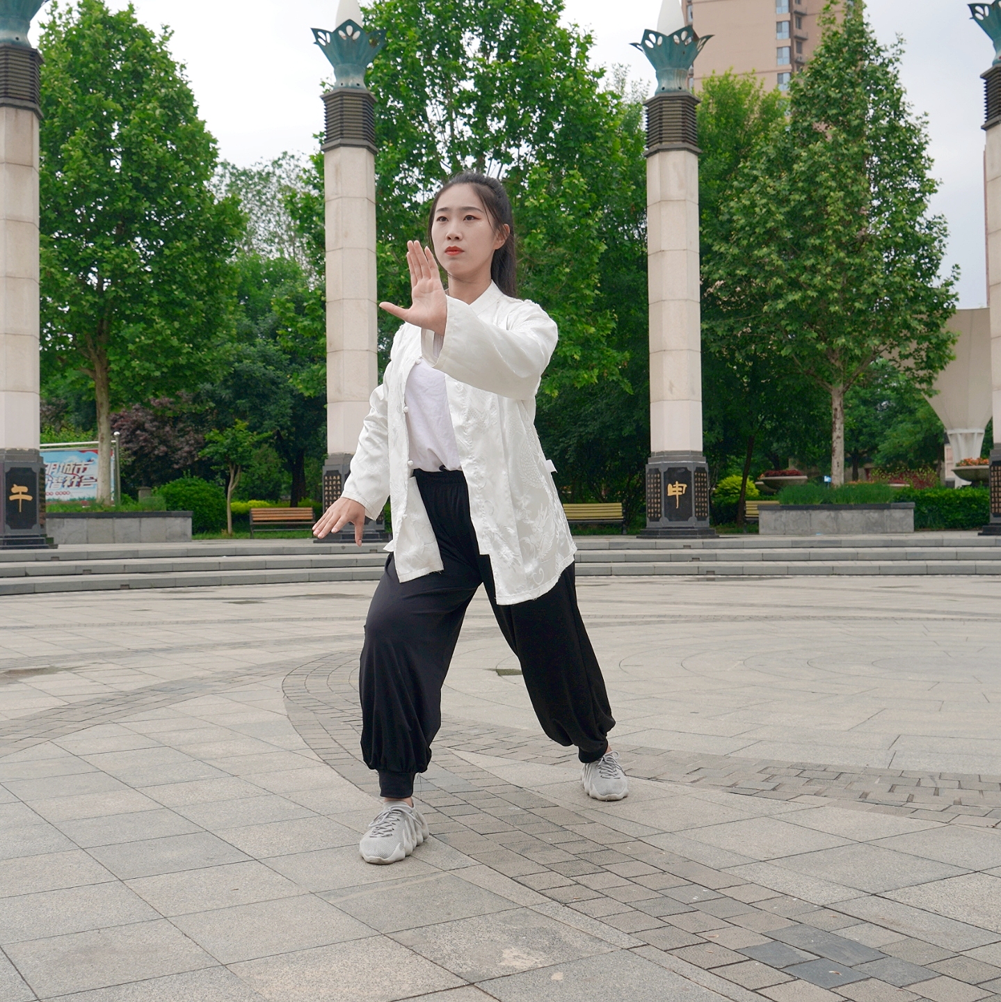 一袭白衣、英姿飒飒,忽而下蹲一记扫堂腿卷起片片落叶,继而起身,脚尖轻点,身子腾起,半空中大展双臂,姿若大鹏,顷刻间又轻盈落地,站定抱拳行礼……日前,在衡水人民公园内,晨练的市民对眼前这位颇有侠女风范的女孩儿行云流水般的武术动作连连称赞。
