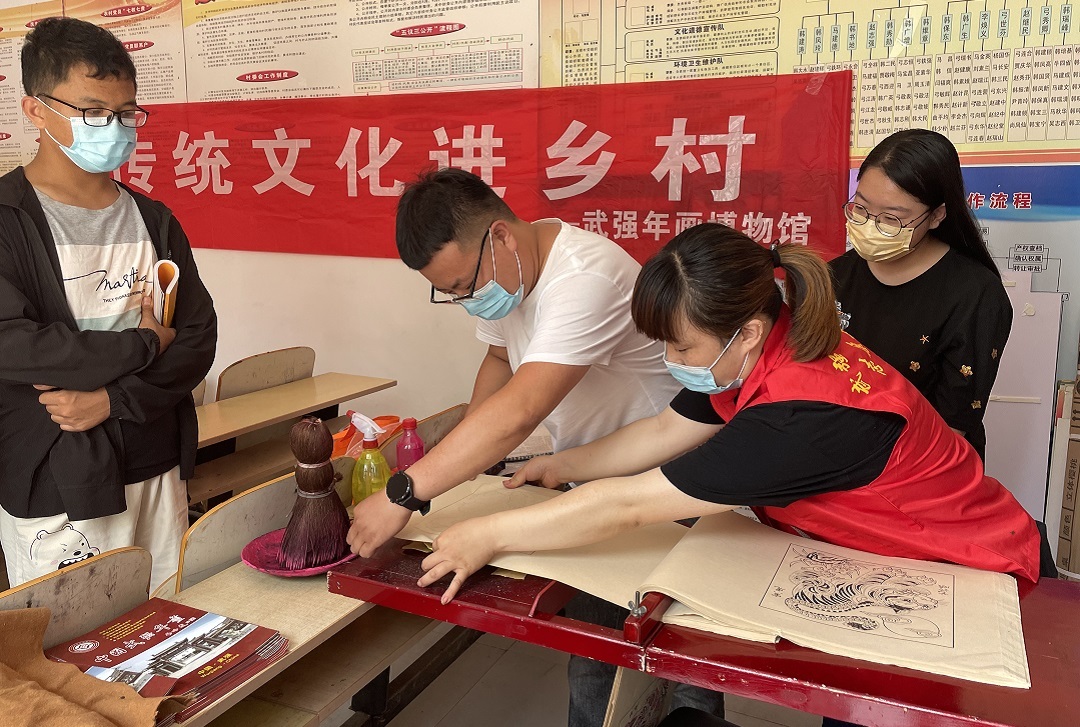 近日,河北省衡水市武强年画博物馆的工作人员走进企业、乡村、社区等地,组织开展了2022年传统文化“五进”活动。每到一处,都吸引群众前来参与。博物馆工作人员向群众发放武强年画书籍和年画宣传资料、展示木版年画的制作过程,并邀请群众体验木版年画印制,零距离感受武强年画的文化魅力。