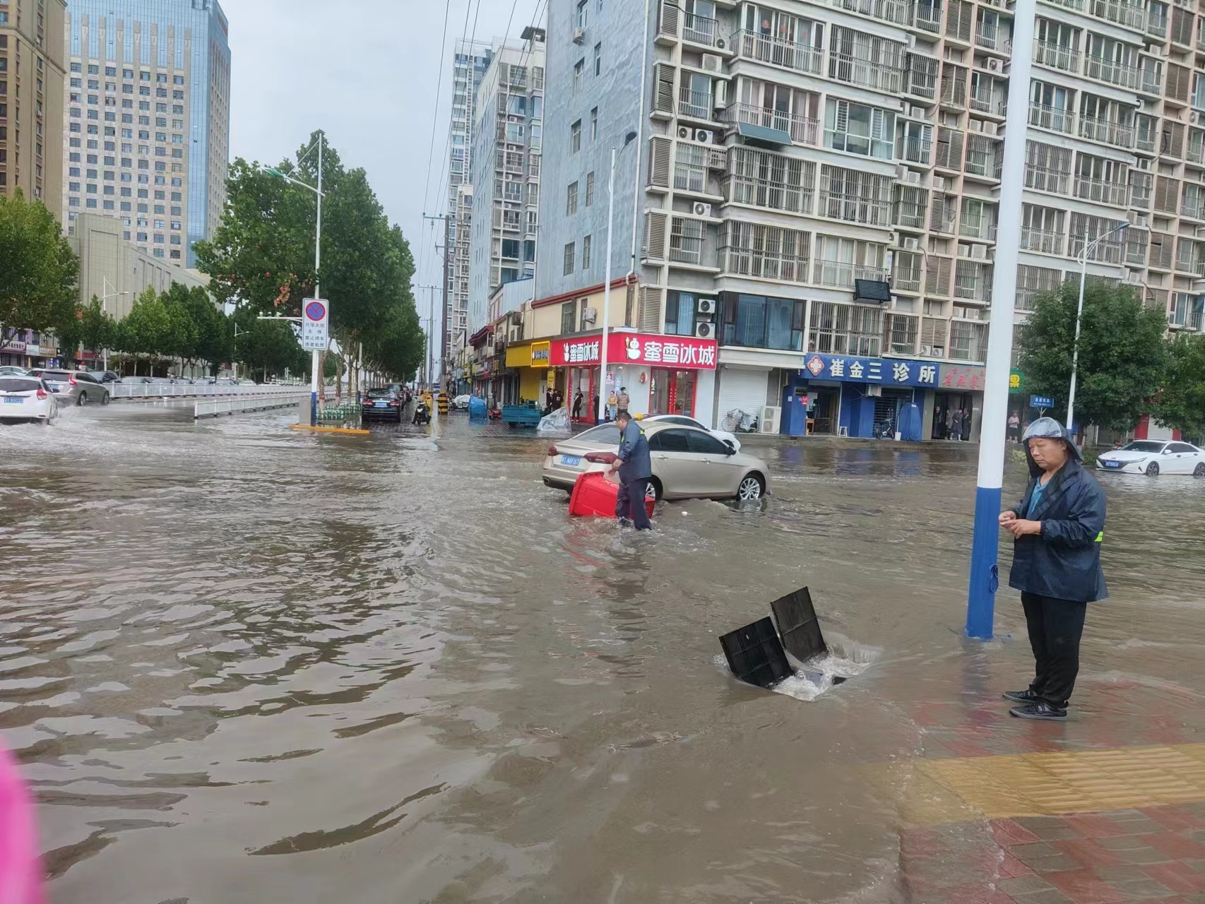 6月28日上午,冀州区出现短时强降雨,部分路面出现了积水。发现情况后,该区住建局防汛负责人以及所有相关工作人员第一时间赶往现场,查看积水情况,组织排水排涝,并迅速通过机器抽水和人工疏通的方式,将路面积水排放,保证道路畅通。