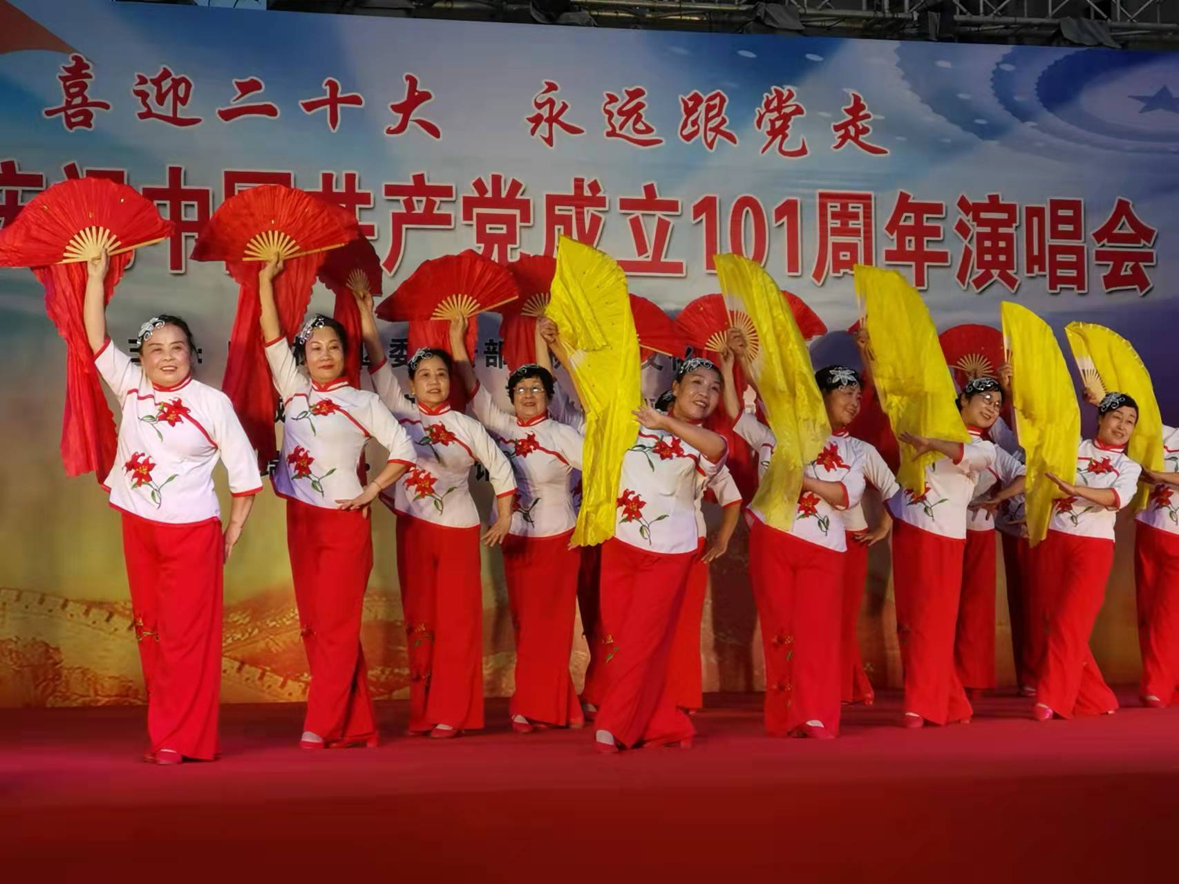 “五星红旗,啊,五星红旗,你将中华民族的心连在一起……”伴着音乐声,激扬澎湃的舞蹈表演《五星红旗》拉开了演出序幕。随后精彩的节目纷纷登场,男声独唱《最美的歌儿唱给妈妈》《我的中国心》、女声独唱《火红的太阳出东方》《珊瑚颂》《红旗飘飘》、萨克斯独奏《再见了大别山》、京剧清唱《绣红旗》、京胡独奏《迎春》、评剧清唱《黛诺》、男声独唱、河北梆子《李保国》、男女对唱《不忘初心》、舞蹈《灯火里的中国》等十几个节目,围绕红色主旋律,通过多种艺术手段,生动展现中国共产党百年来带领中国人民进行革命、建设、改革的壮美画卷,唱出了对党的热爱,表达了昂首阔步迈向全面建设社会主义现代化国家新征程的憧憬和期待。