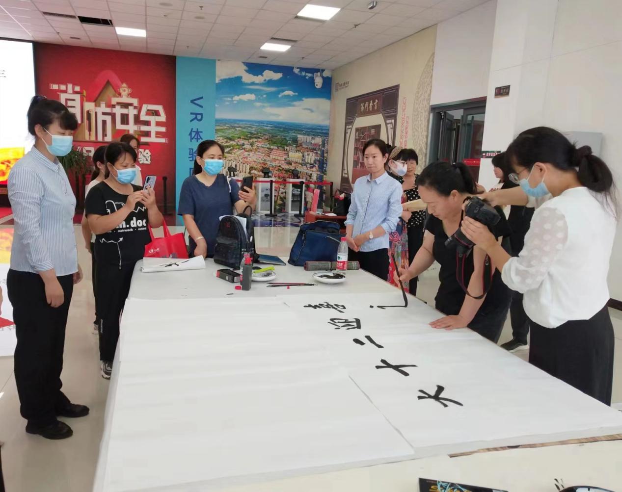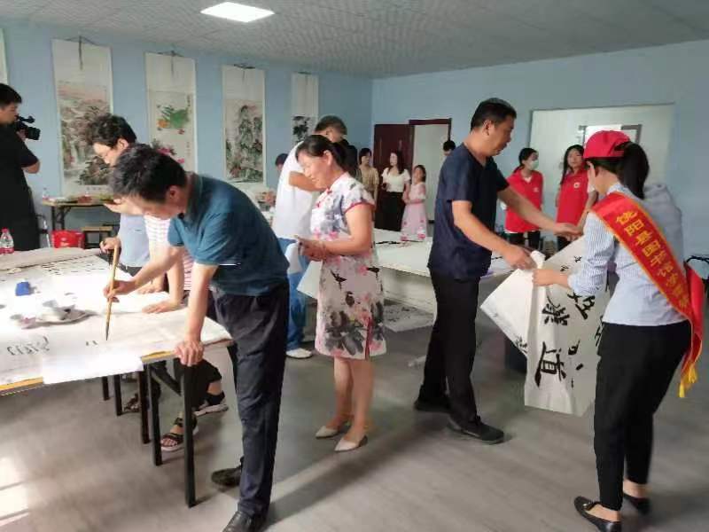 6月29日上午,饶阳县文广旅局、饶阳县图书馆同饶阳县大官亭镇、饶阳县书法家协会共同举办“热烈庆祝中国共产党101周年”文化下基层活动。活动中,书法老师根据活动主题进行自主设计,精心创作,共写出150余幅作品。活动既提升了群众文化素养,让他们感受到生活之美、艺术之美、情感之美,同时也深化了爱党教育。