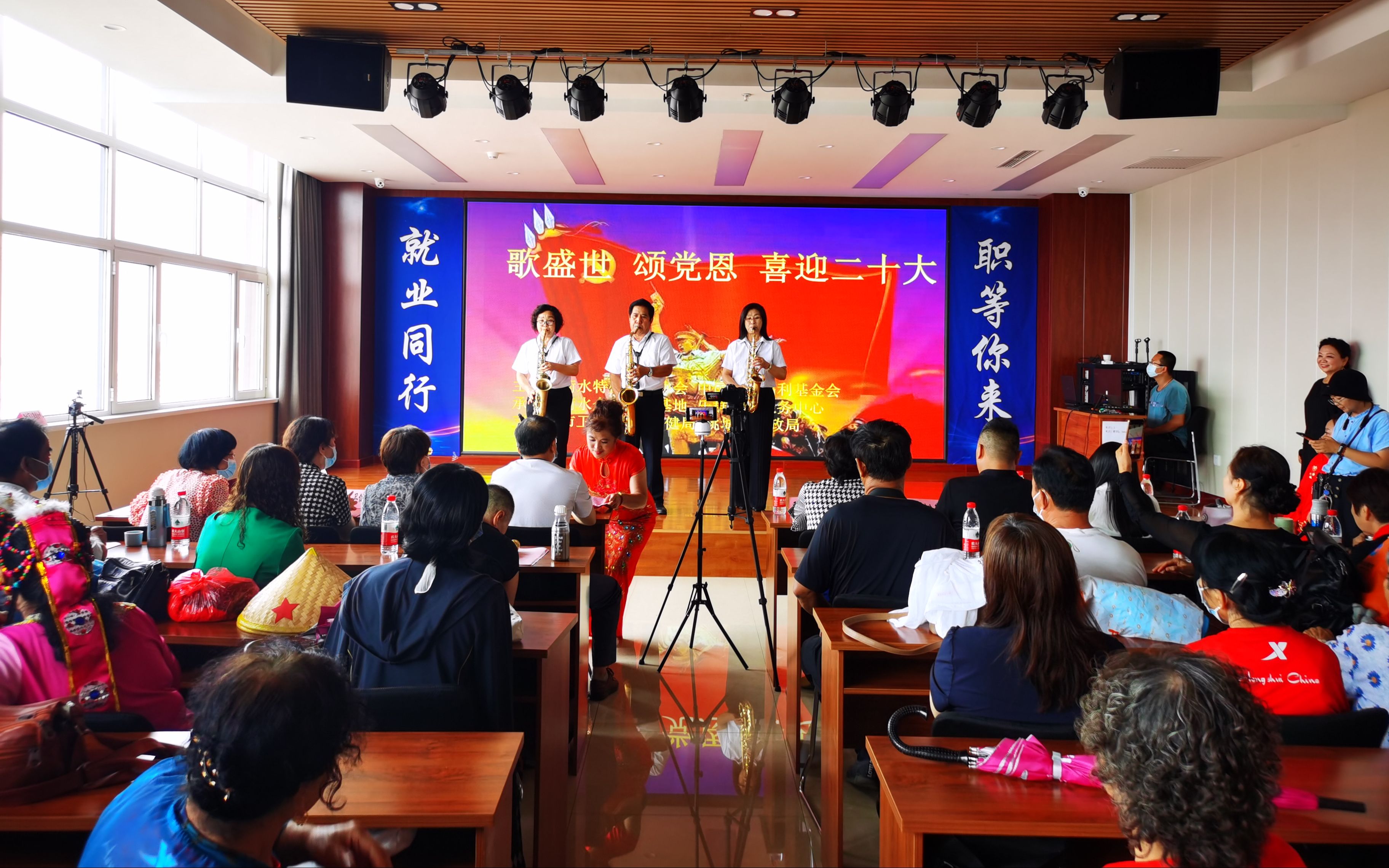 当日下午2时30分许,在夕阳红萨克斯乐队悠扬的萨克斯声中,活动正式拉开帷幕。衡水爱心小分队队长侯宝明和红日艺术团、滨湖新区舞蹈队、姐妹花舞蹈队等演艺团队的队员们,依次带来歌曲、歌伴舞、舞蹈等节目,表达着对美好生活的向往,抒发内心深处最真挚的爱党爱国情怀。大厅内歌声悠扬,舞姿翩翩,人人脸上都是喜悦、幸福的笑容,最后,大家齐声合唱《没有共产党就没有新中国》、《歌唱祖国》等红色歌曲。
