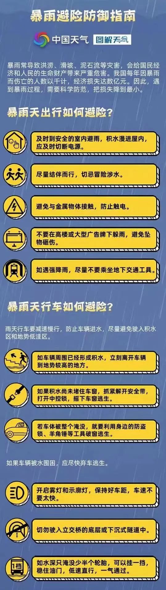 在此,提醒广大市民尽量减少在雷雨天气外出和户外活动,不要在行道树、灯杆下、桥下通道避雨躲风,远离广告牌、高墙、高层建筑、建筑工地,在建筑物密集区域,注意高空坠物。必须出行时,请在出行前关注天气预报和路况提醒,驾车、行人应尽量避开绕行严重积水路段,途经积水路段时应尽量缓行、稳行,避免车辆涉水熄火,造成车辆损失和人身伤害,确保安全。