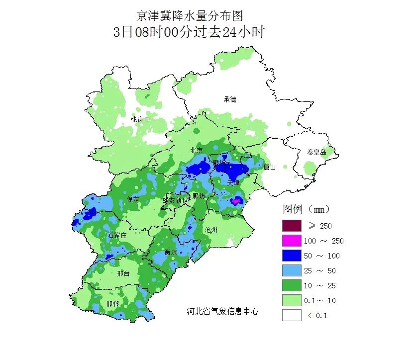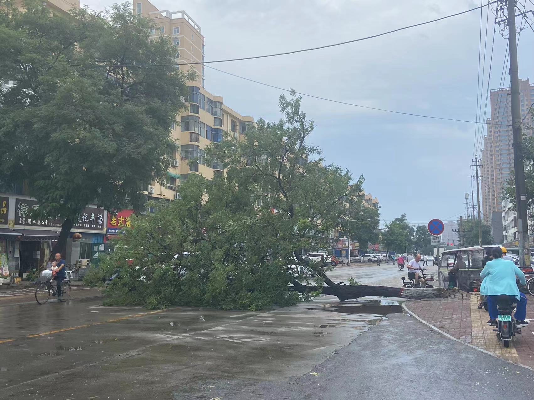 这个周末雨不小,截至3日午后3时,各地降雨量普遍达到中到大雨,其中最大降雨量出现在阜城,76.7毫米,为暴雨级别。降雨时伴随着短时大风,市区问津街30多厘米直径的大树被连根拔起。